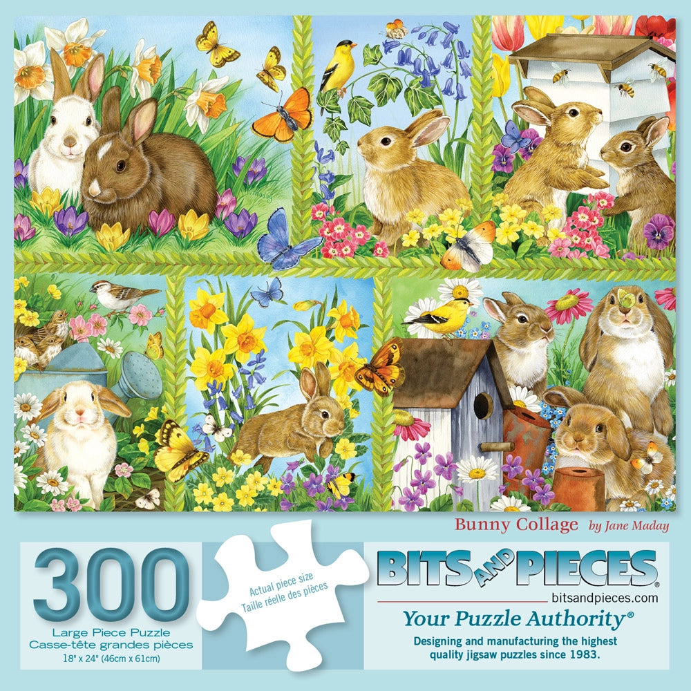 Sweet, playful, and full of spring spirit, Bunny Collage by Jane Maday is a charming mix of baby animals, garden scenes, and pastel florals. Each section is packed with adorable bunnies and colorful details that make this collage jigsaw puzzle an absolute joy.