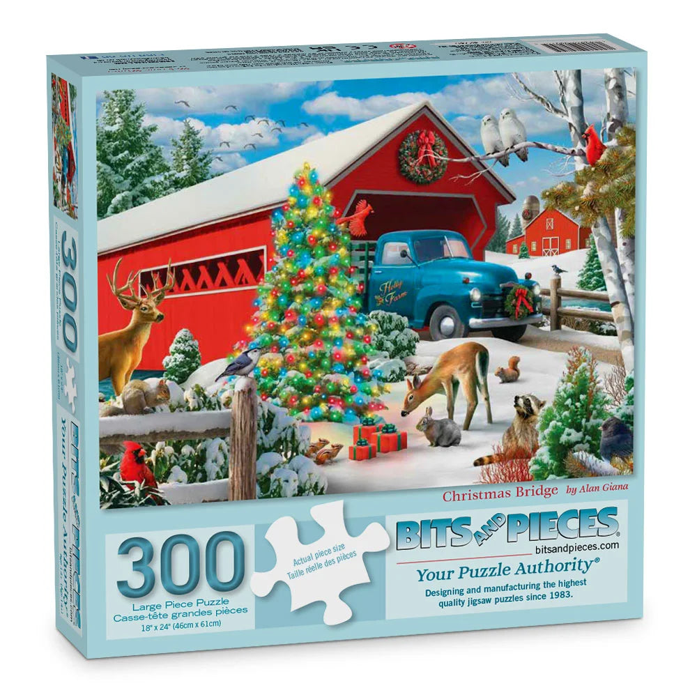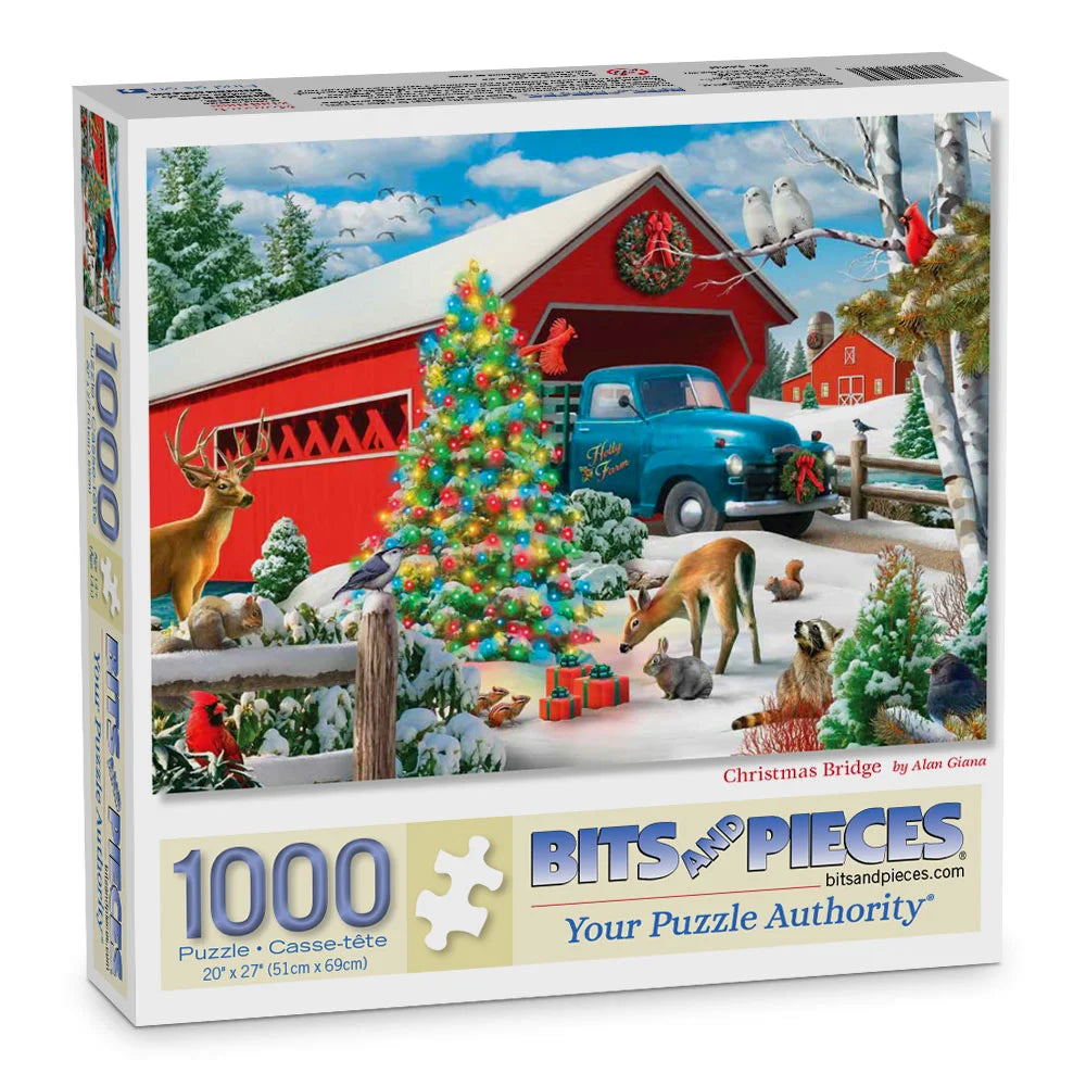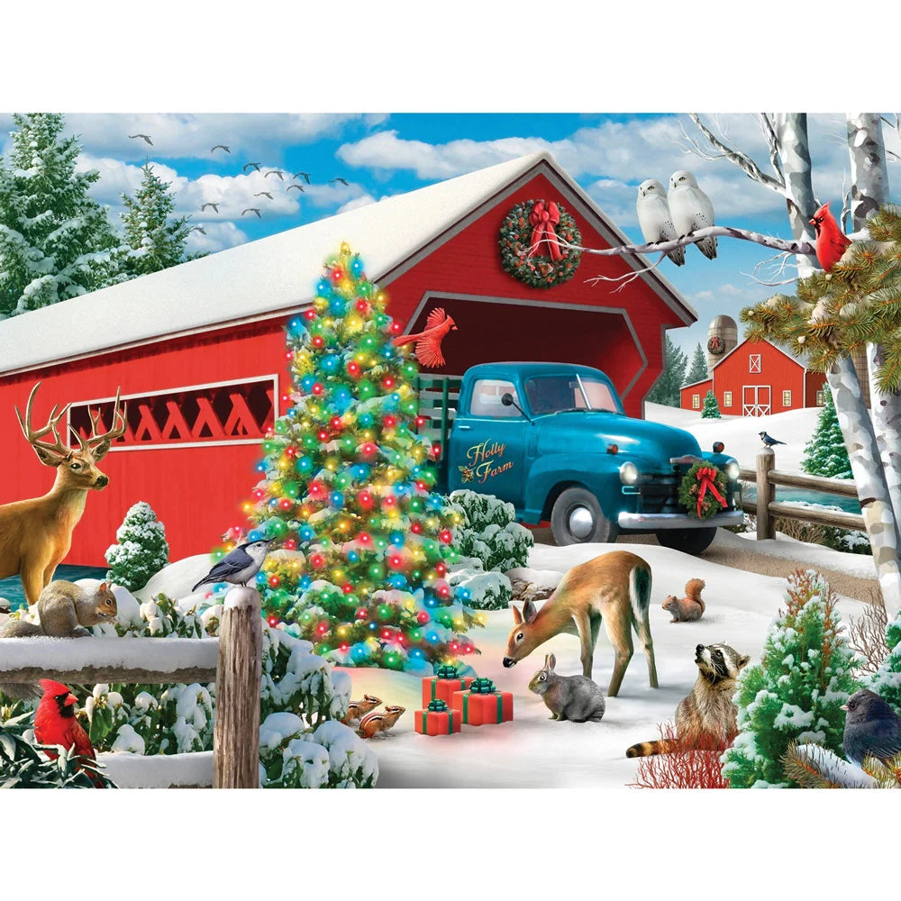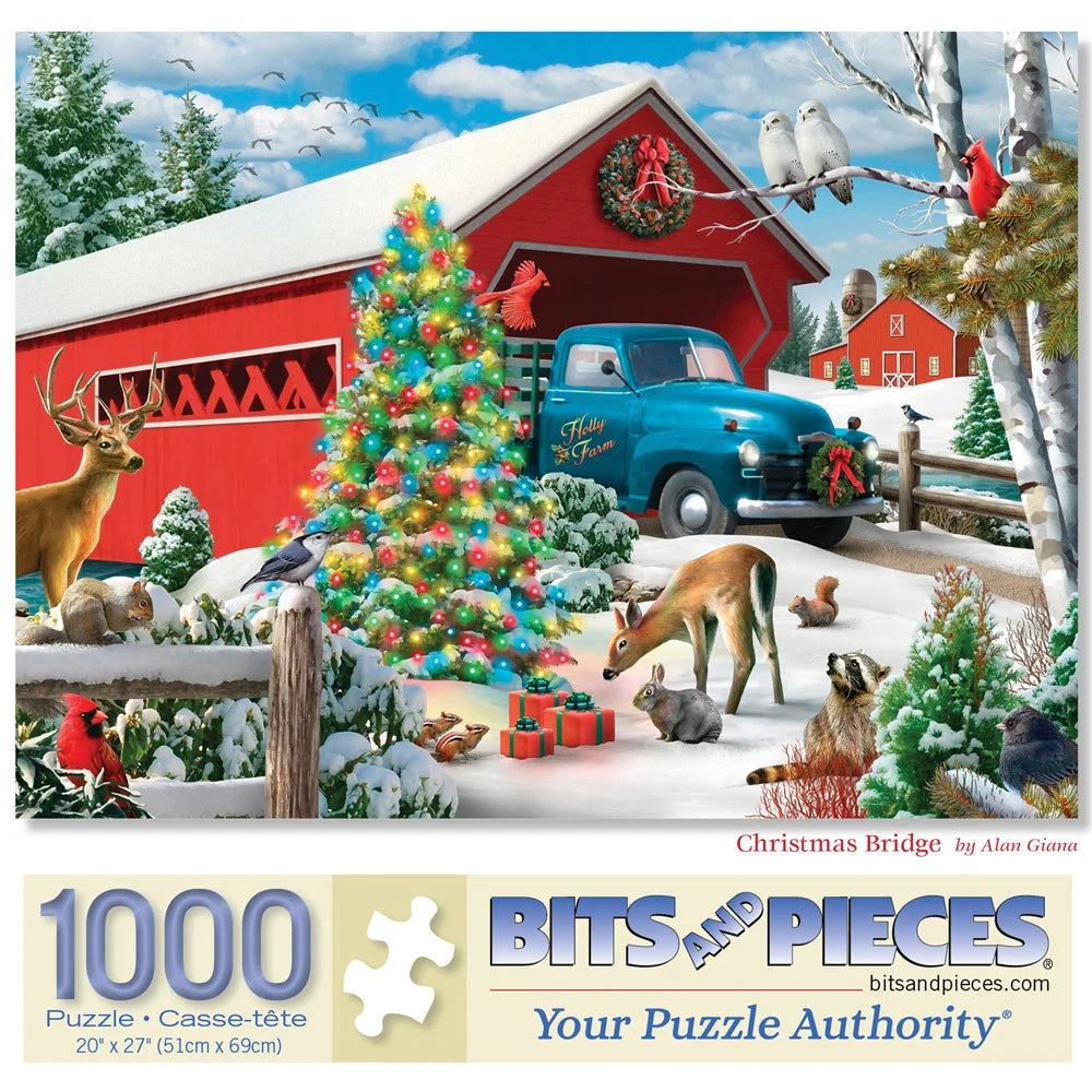 A red covered bridge, classic truck, and forest creatures set the stage for holiday magic in Christmas Bridge by Alan Giana. With gifts under the tree and snow blanketing the ground, it’s a peaceful country Christmas scene that feels like a warm hug on a winter’s day.