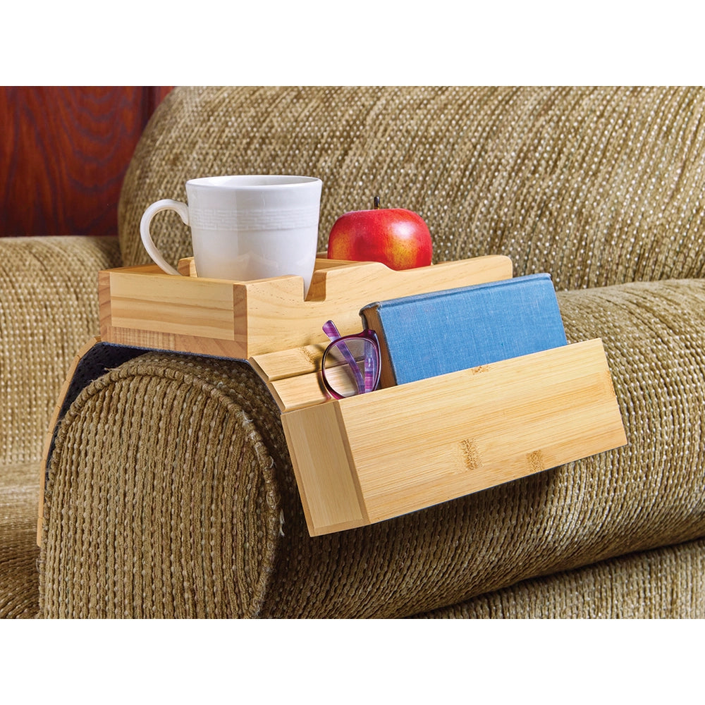 Keep your essentials right by your side with this sleek and sturdy bamboo couch caddy. Designed to rest over most chair and sofa arms, it provides a stable surface for drinks and snacks, along with a built-in pocket to store remotes, magazines, or a tablet. The durable bamboo finish blends with any decor, while the anti-slip backing helps keep everything steady. A smart, space-saving solution for any lounge spot.