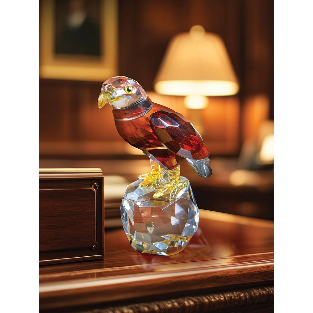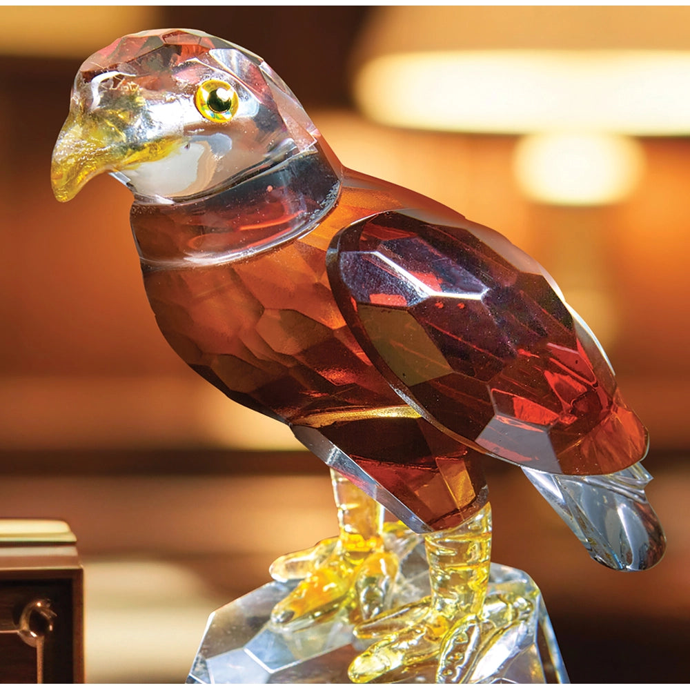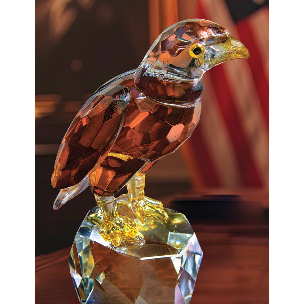 Celebrate the enduring spirit of America with this striking Crystal Bald Eagle. Expertly sculpted from premium crystal, this majestic collectible captures the bold posture and noble gaze of the nation's most iconic bird. Whether displayed on a desk, shelf, or mantel, it reflects light beautifully and adds a powerful patriotic touch to any space. A perfect keepsake for collectors, veterans, or proud Americans. Measures approximately 4.3 inches high by 1.4 inches wide by 1.6 inches deep.