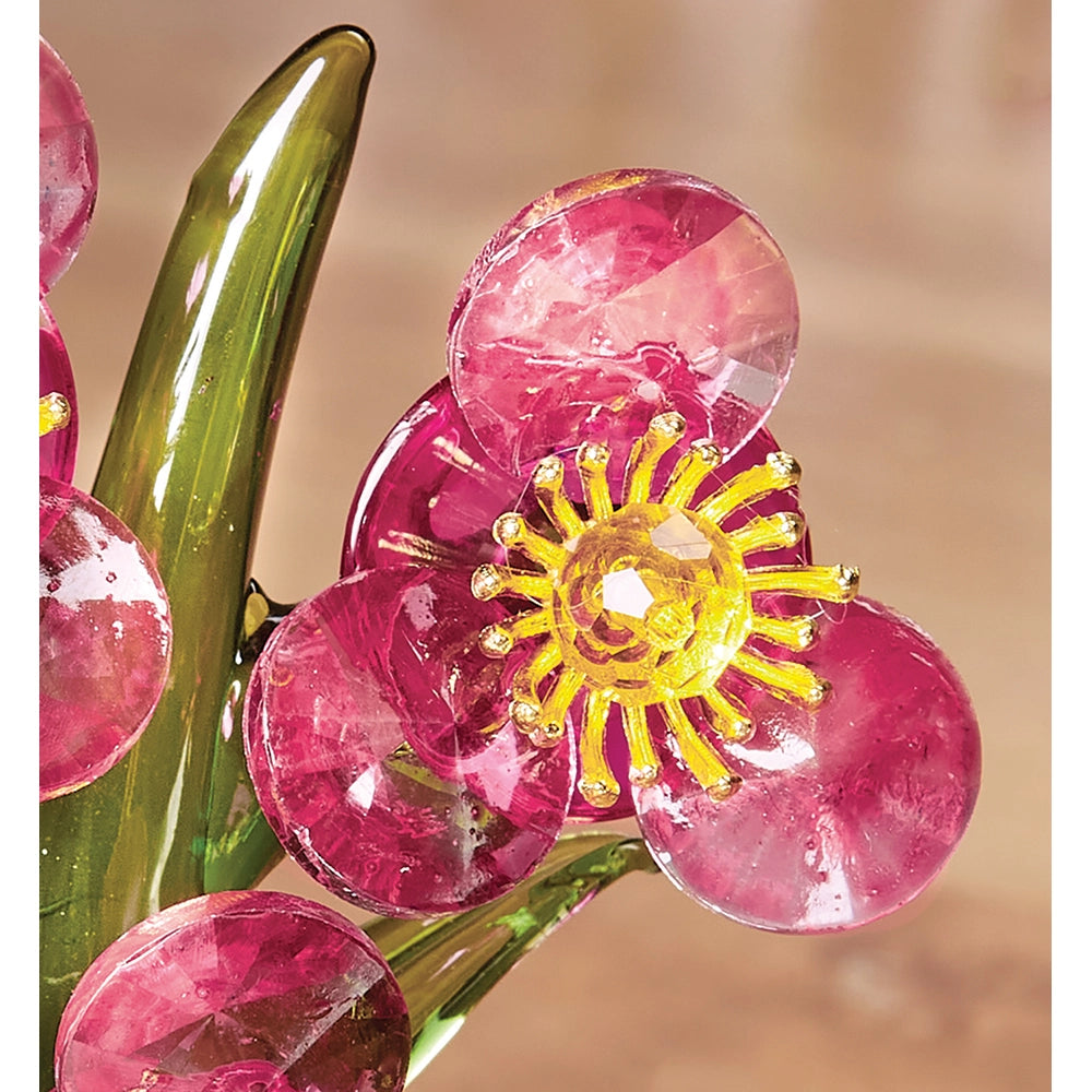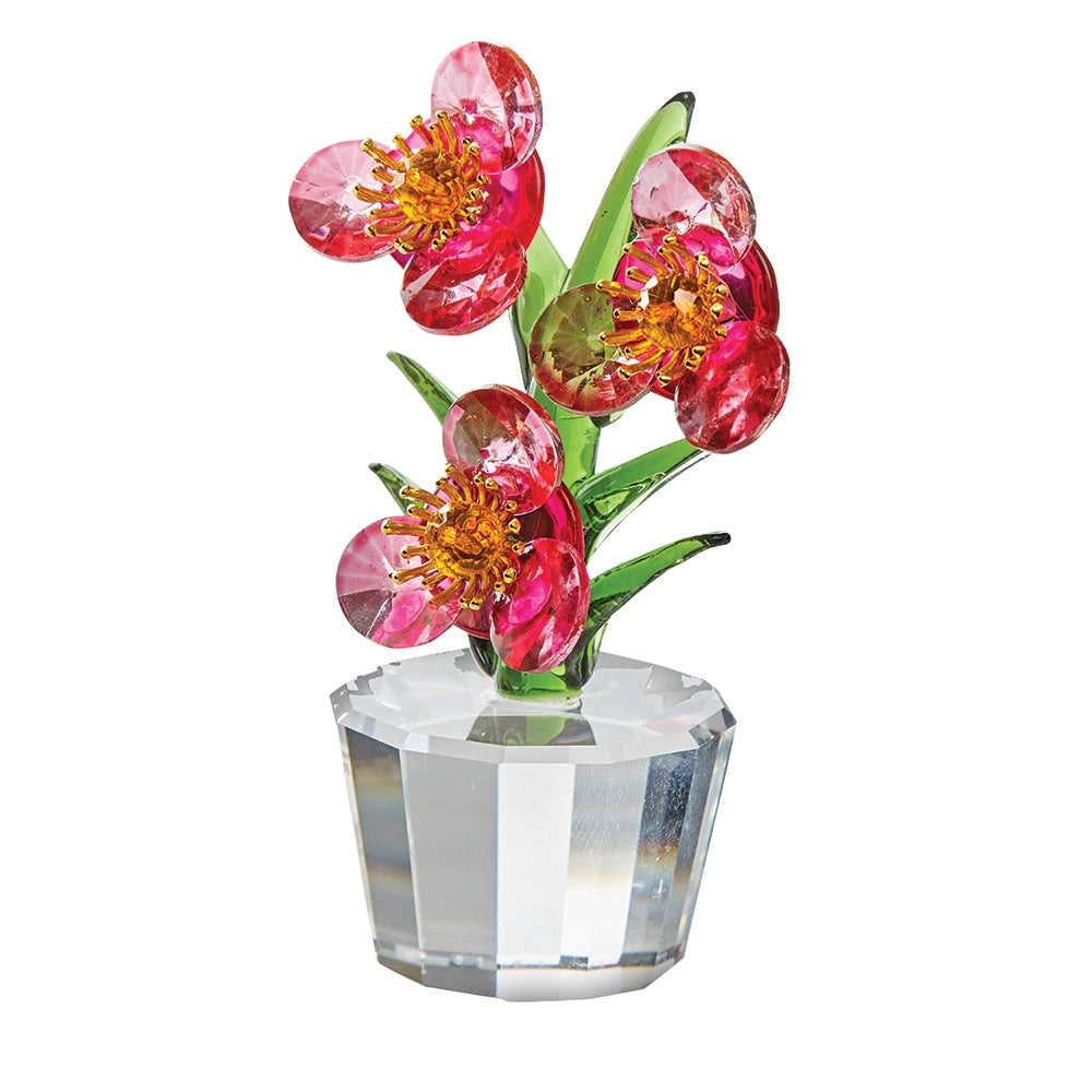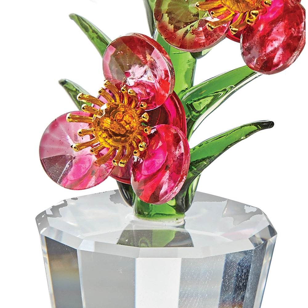 Add a touch of sparkle to your space with the Crystal Orchid. This elegant piece captures the beauty of nature in dazzling detail, featuring vibrant fuchsia petals made from faceted crystal and accented with golden centers and lush green leaves. Set in a clear crystal pot, it’s a radiant display that catches the light from every angle. A perfect gift or centerpiece that brings lasting bloom to any room. Measures 3-1/2" x 2-1/2" x 1-3/4".