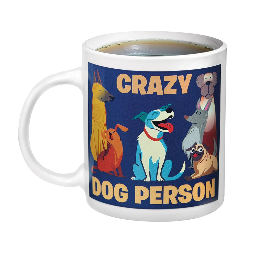 Celebrate your canine love—one warm sip at a time! This delightful Dog Person Mug begins with a sweet pup illustration and the simple phrase “Dog Person.” But pour in your favorite hot beverage and let the transformation begin: a whole pack of playful pups appears, along with the word “Crazy” above them. Suddenly your mug proudly reads “Crazy Dog Person”—because some of us wear that title with joy. Holds 11 oz. Hand wash.