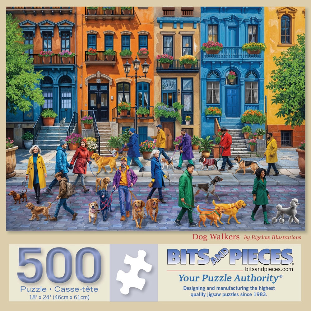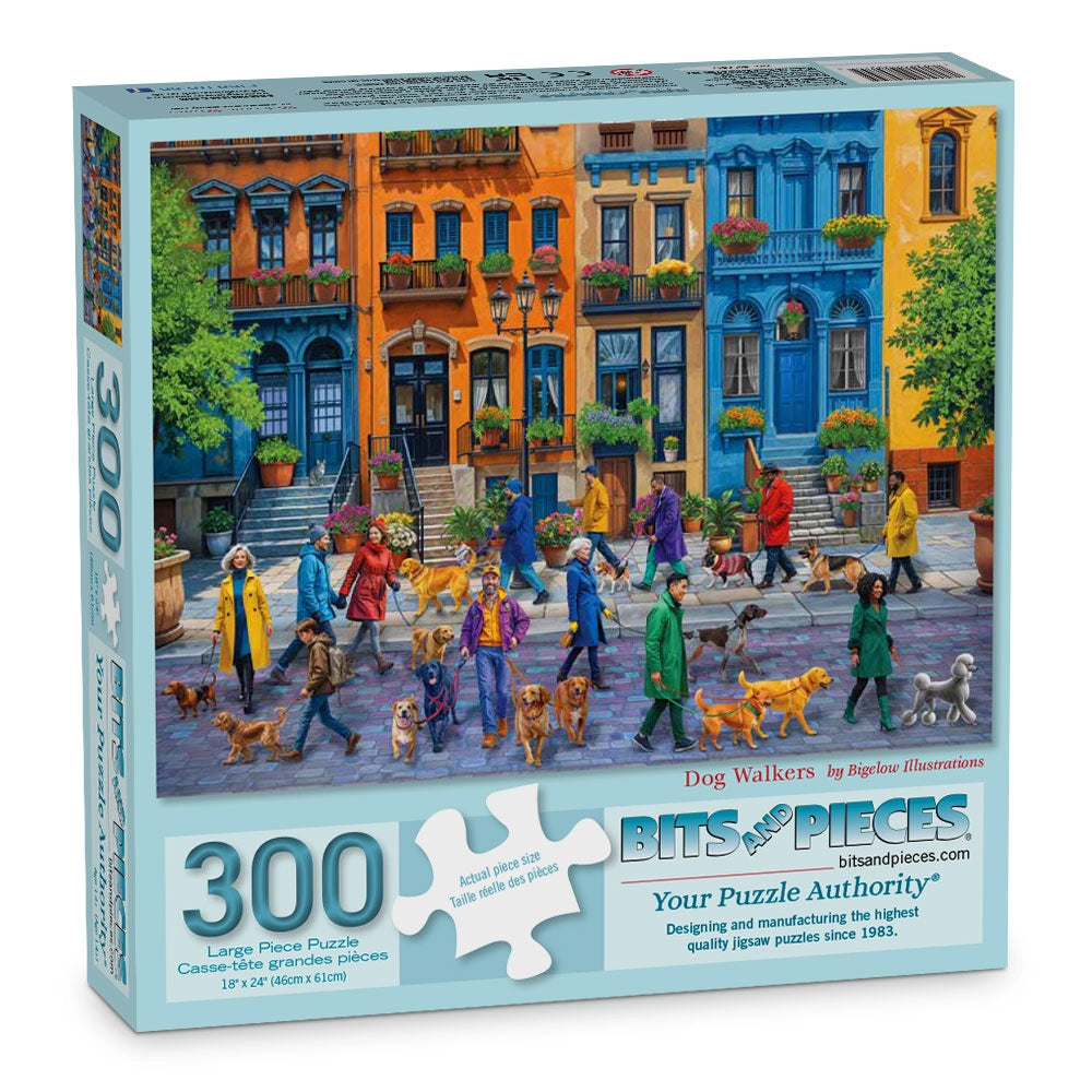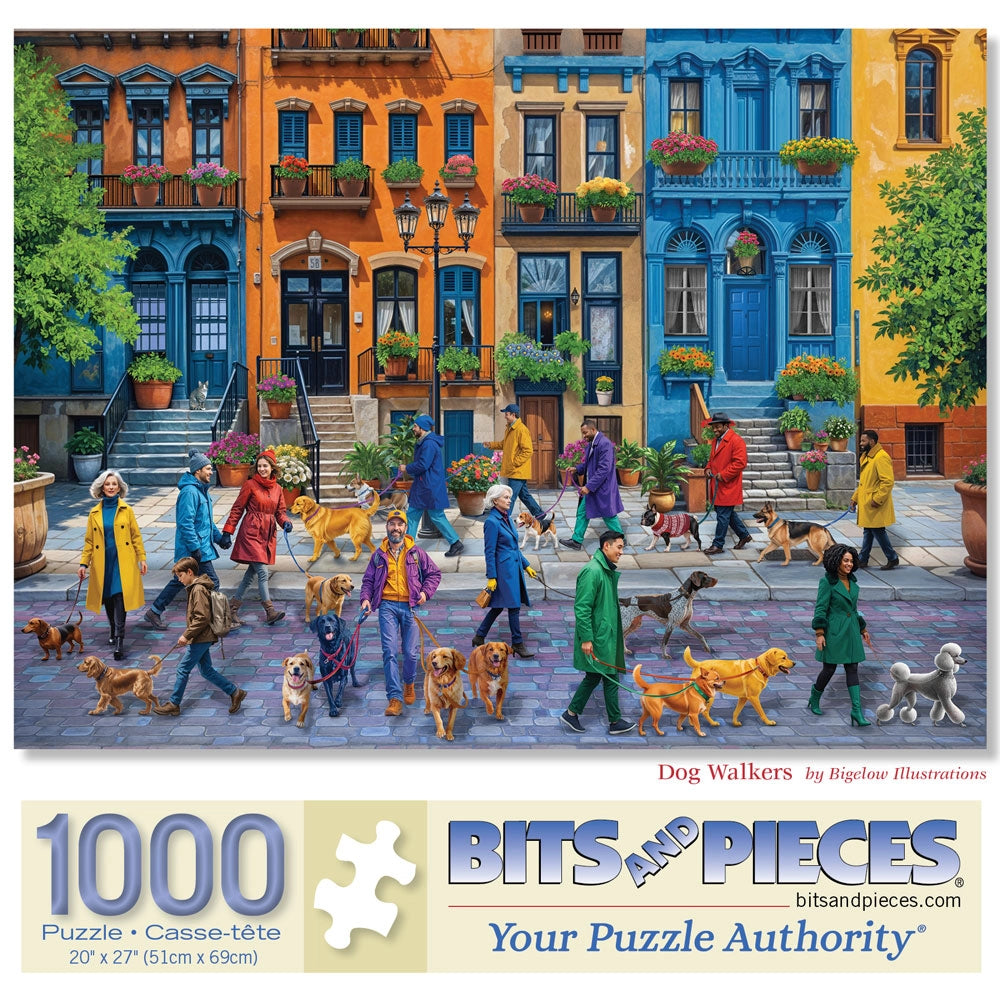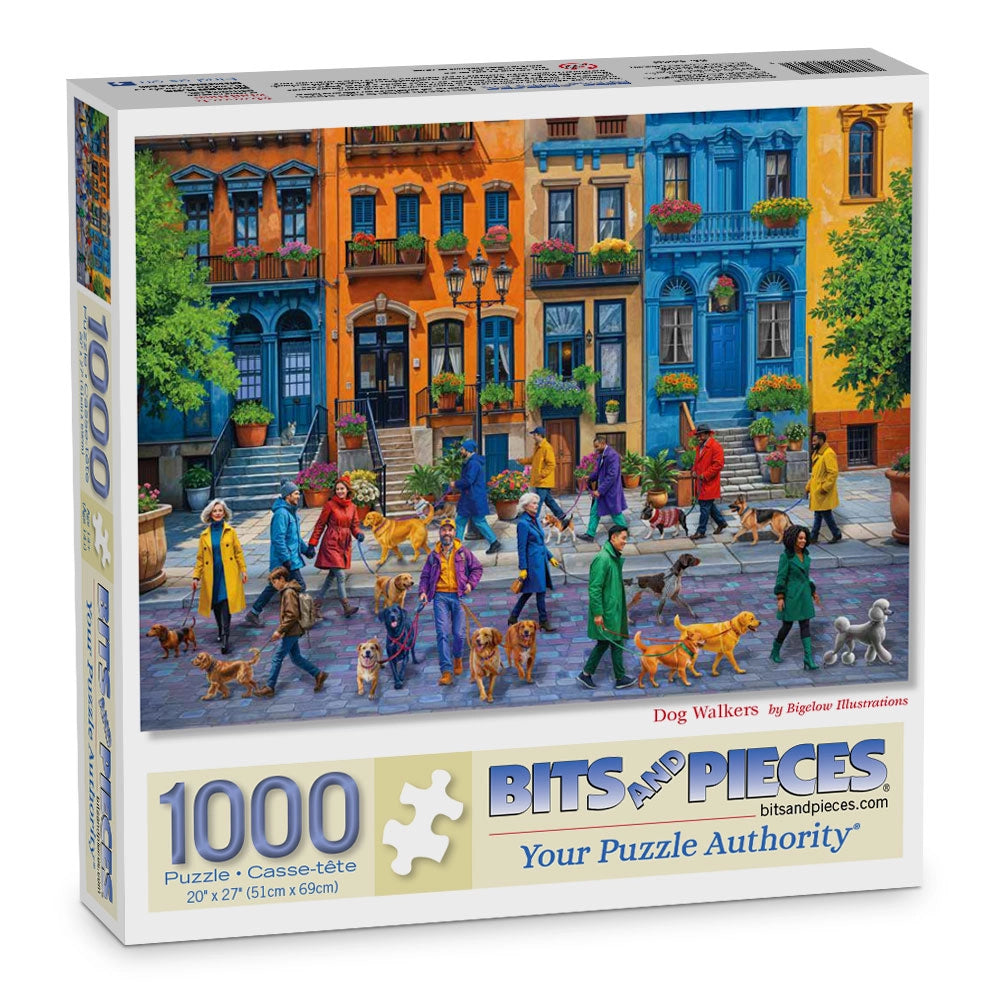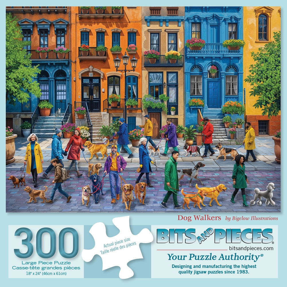 Artist Bigelow Illustrations captures the lovable chaos of a city street full of furry friends and their humans. From leaping pups to chatting neighbors, this puzzle is packed with personality, movement, and charm. Each window tells a story, and every sidewalk square holds a surprise. A colorful, character-filled puzzle that celebrates everyday joy and the magic of dog-walking routines.