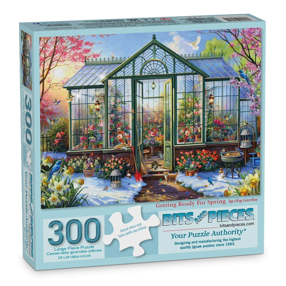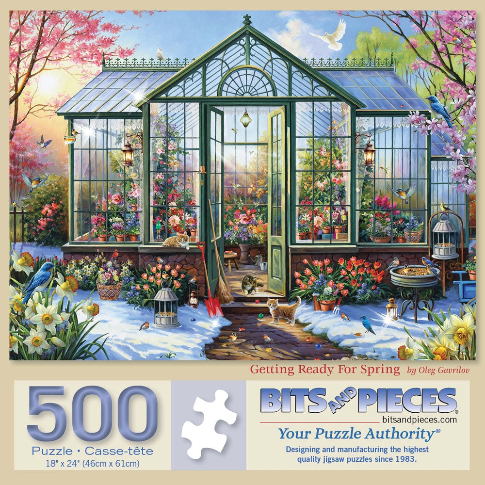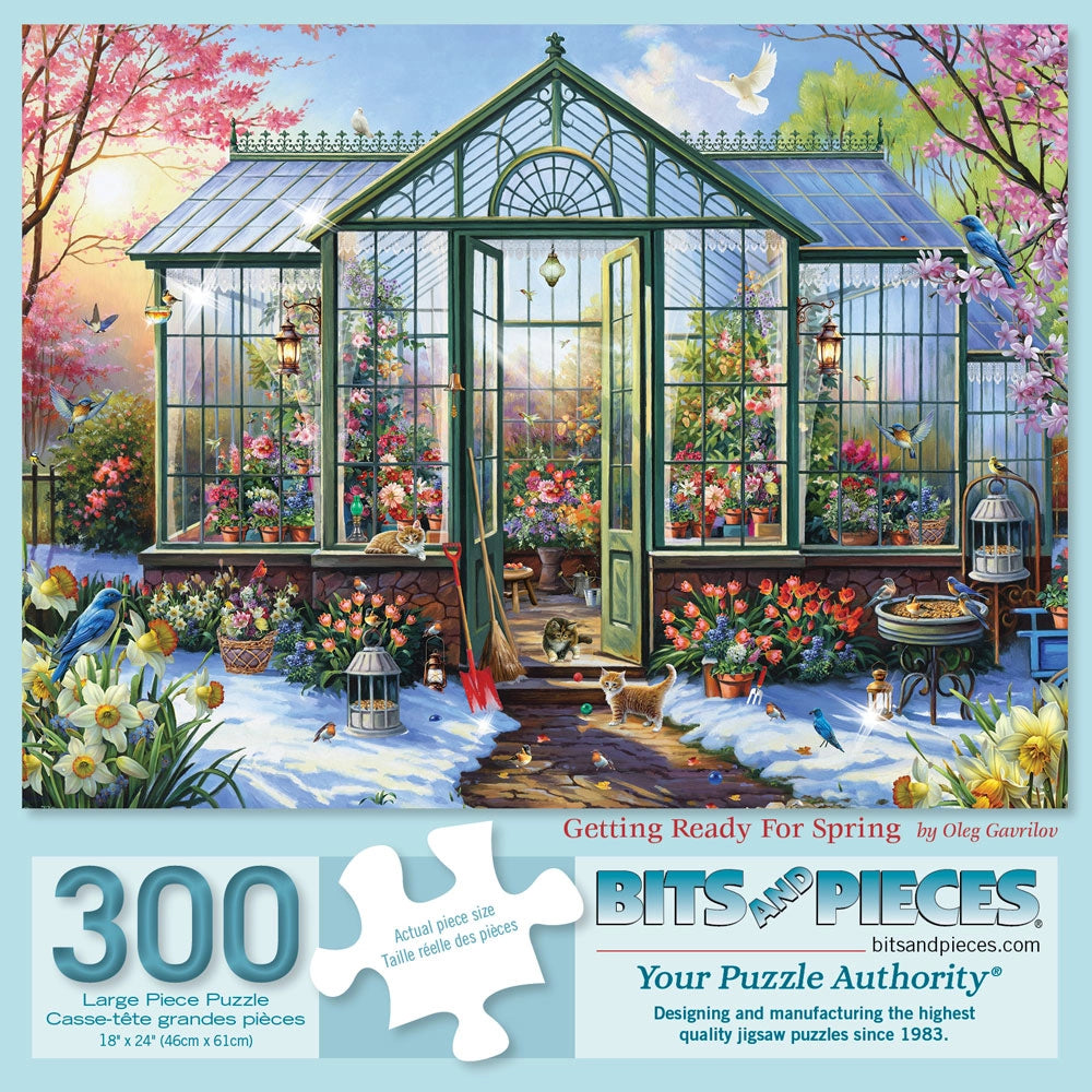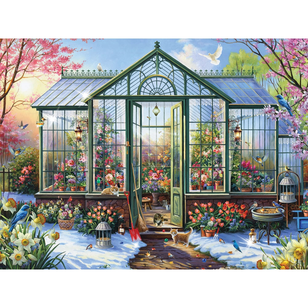 This charming jigsaw puzzle captures a quiet moment of transition, as gardeners prepare their greenhouse for the first blooms of spring. Delicate flowers peek through the glass while snow still lingers on the ground, creating a heartwarming mix of winter and renewal. A peaceful and detailed puzzle that invites you to slow down and enjoy the change of seasons.