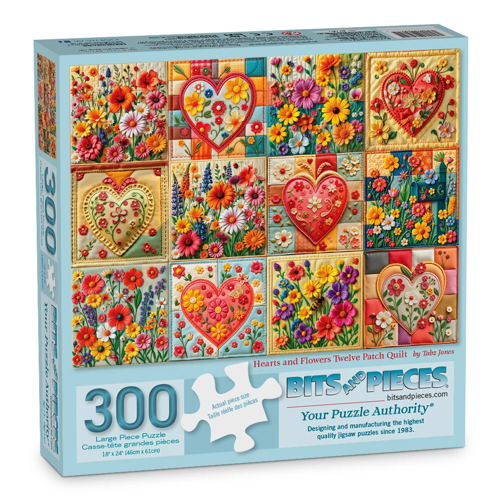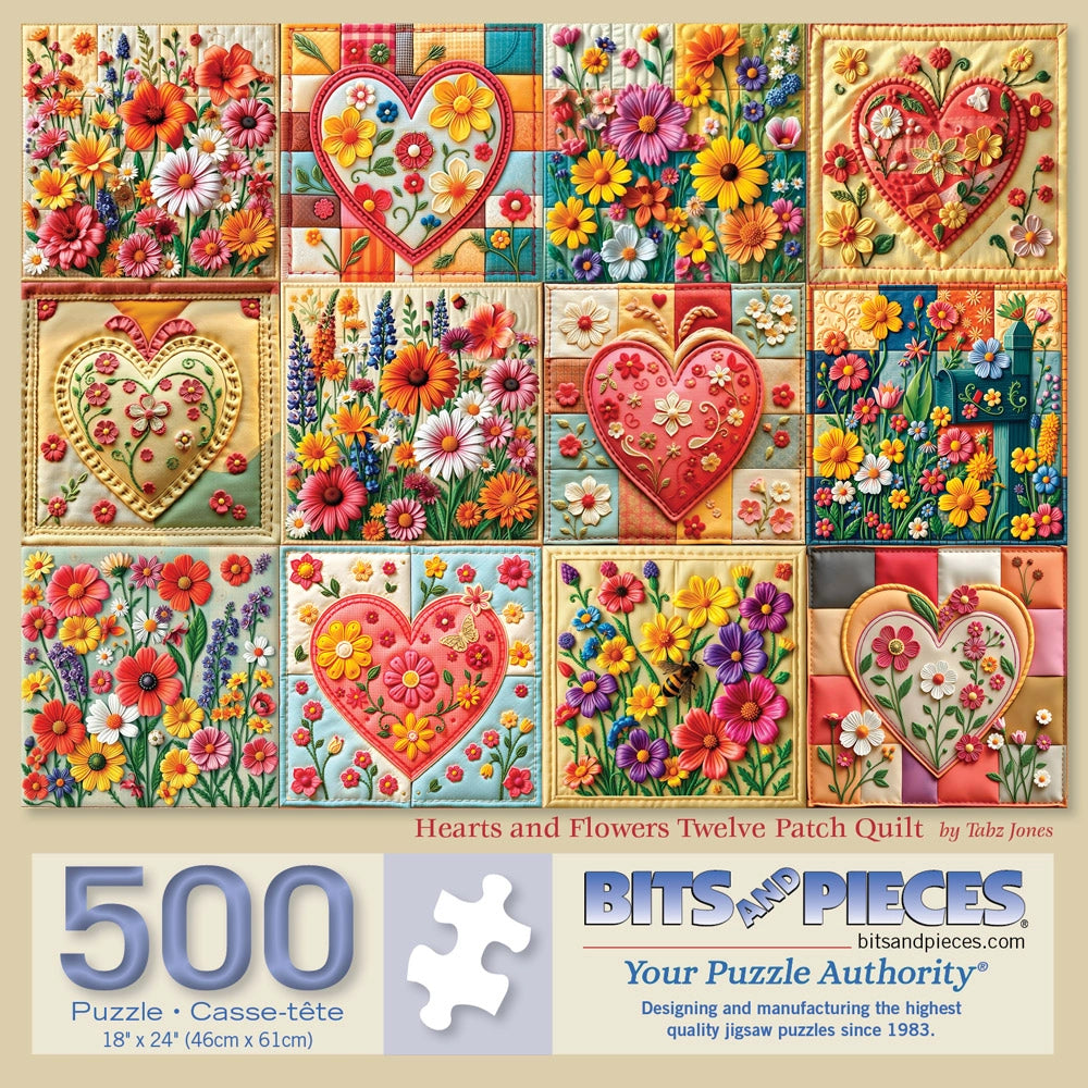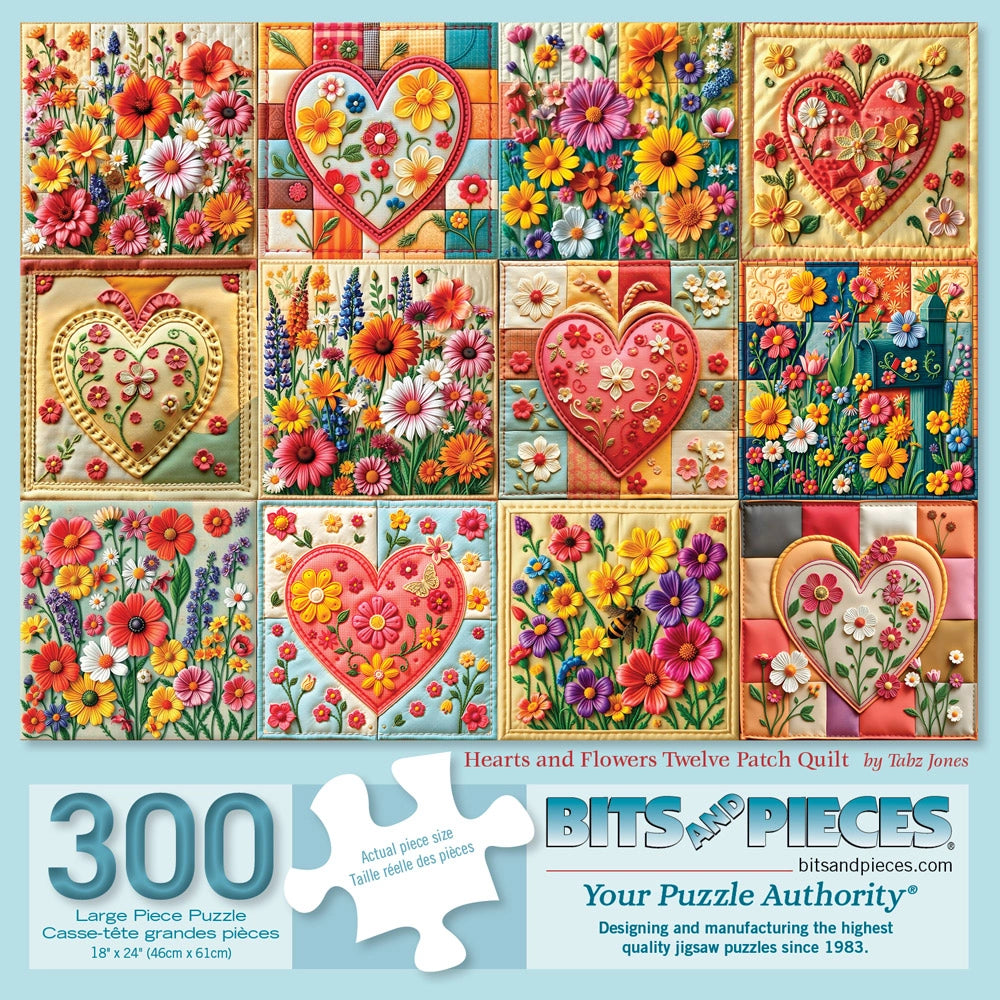 Hearts and Flowers Twelve Patch Jigsaw Puzzle