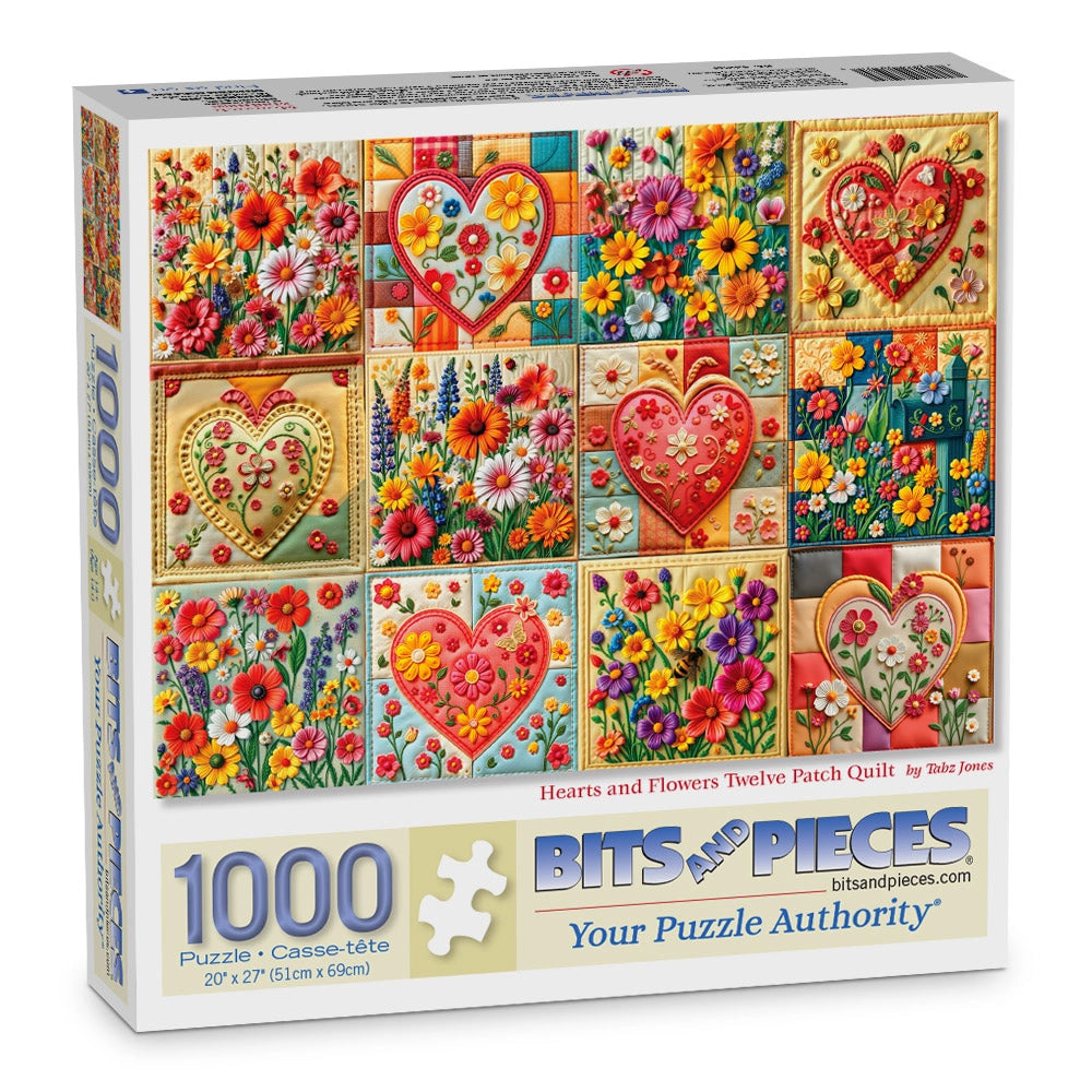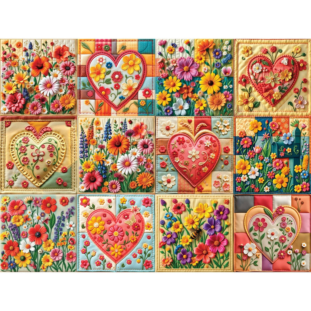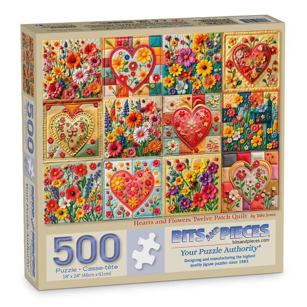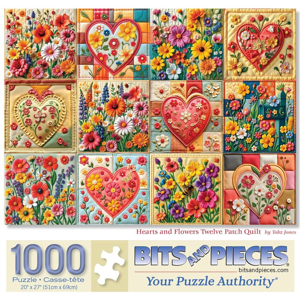 Hearts and Flowers Twelve Patch Jigsaw Puzzle