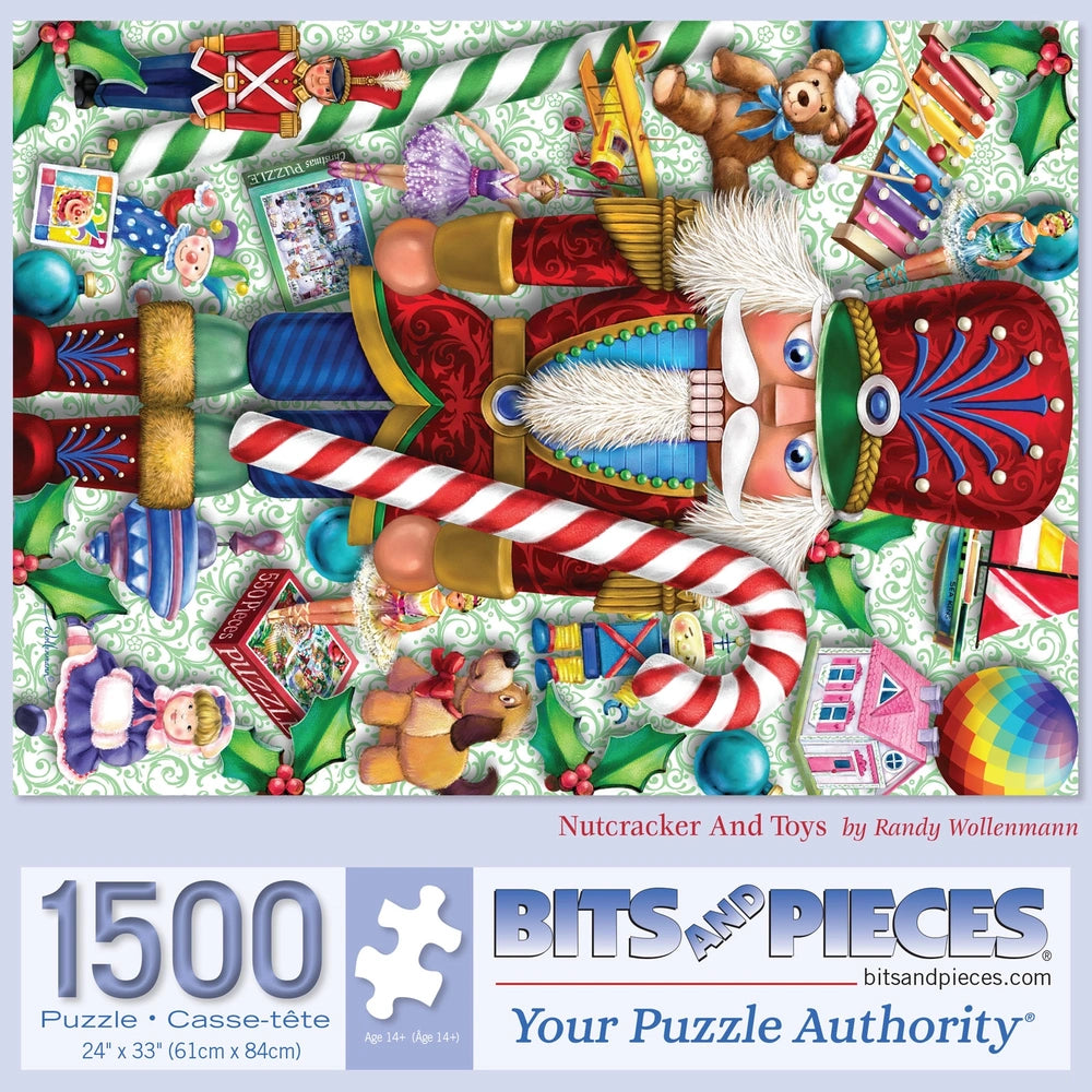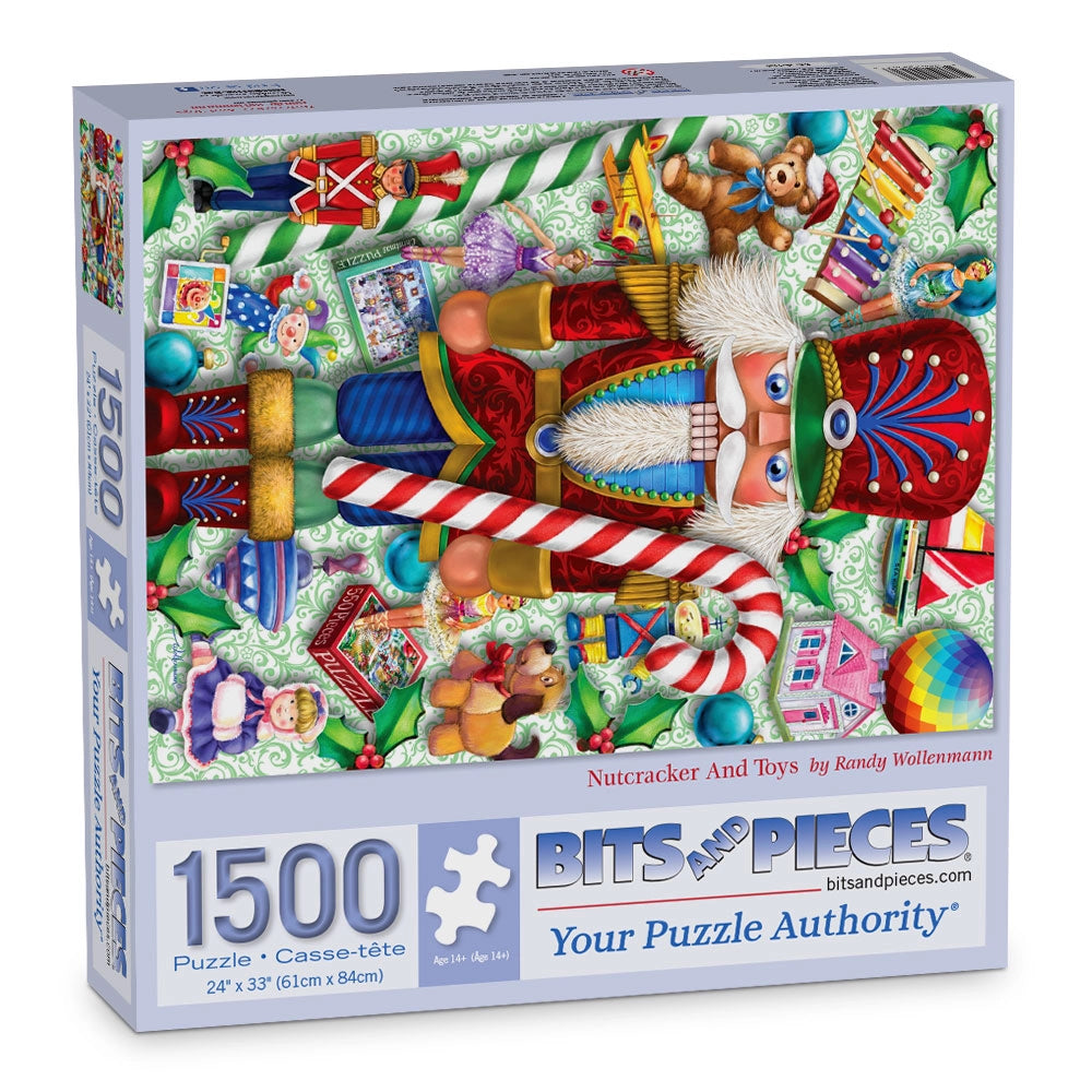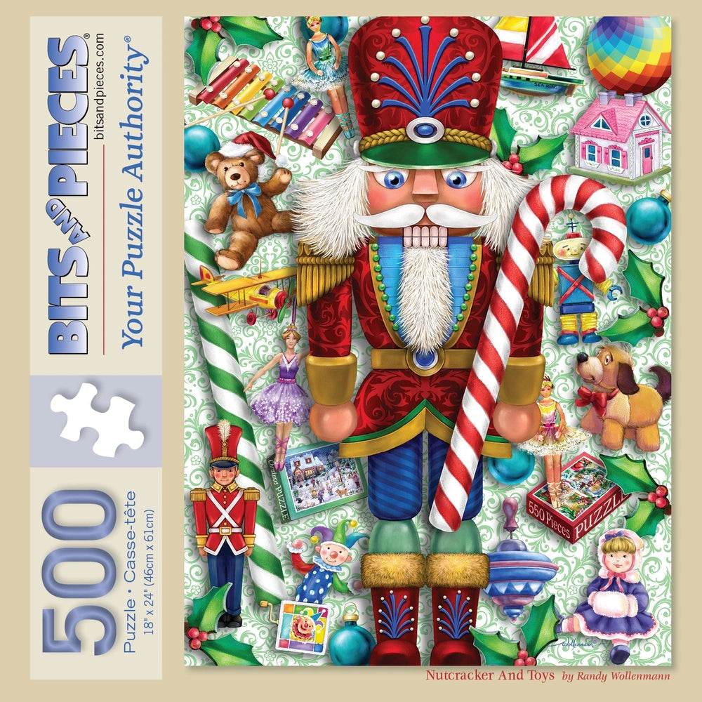 Bring holiday magic to life with Nutcracker And Toys! This vibrant puzzle by Randy Wollenmann captures the timeless charm of Christmas, with a classic Nutcracker standing proudly among a whimsical assortment of toys. From teddy bears to toy soldiers, each colorful detail evokes childhood memories of festive joy and wonder. Perfect for getting into the holiday spirit, this puzzle is both a nostalgic treat and a delightful challenge.