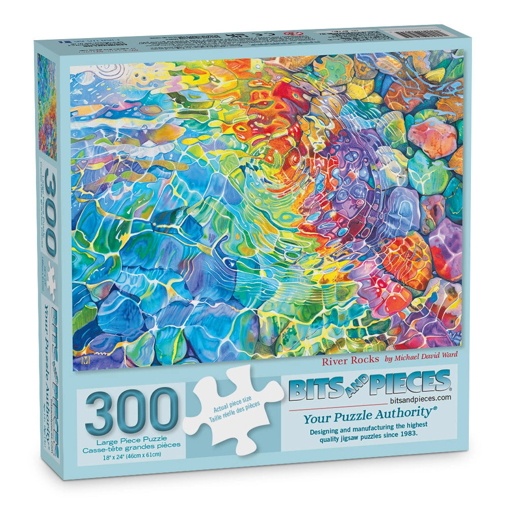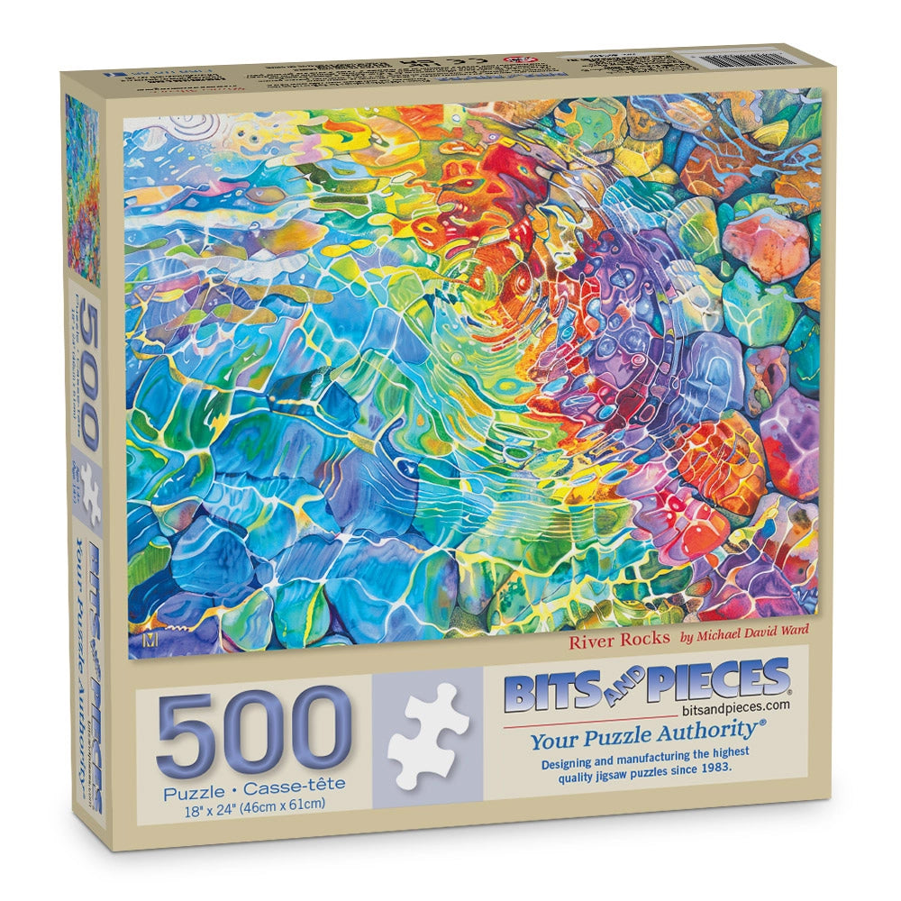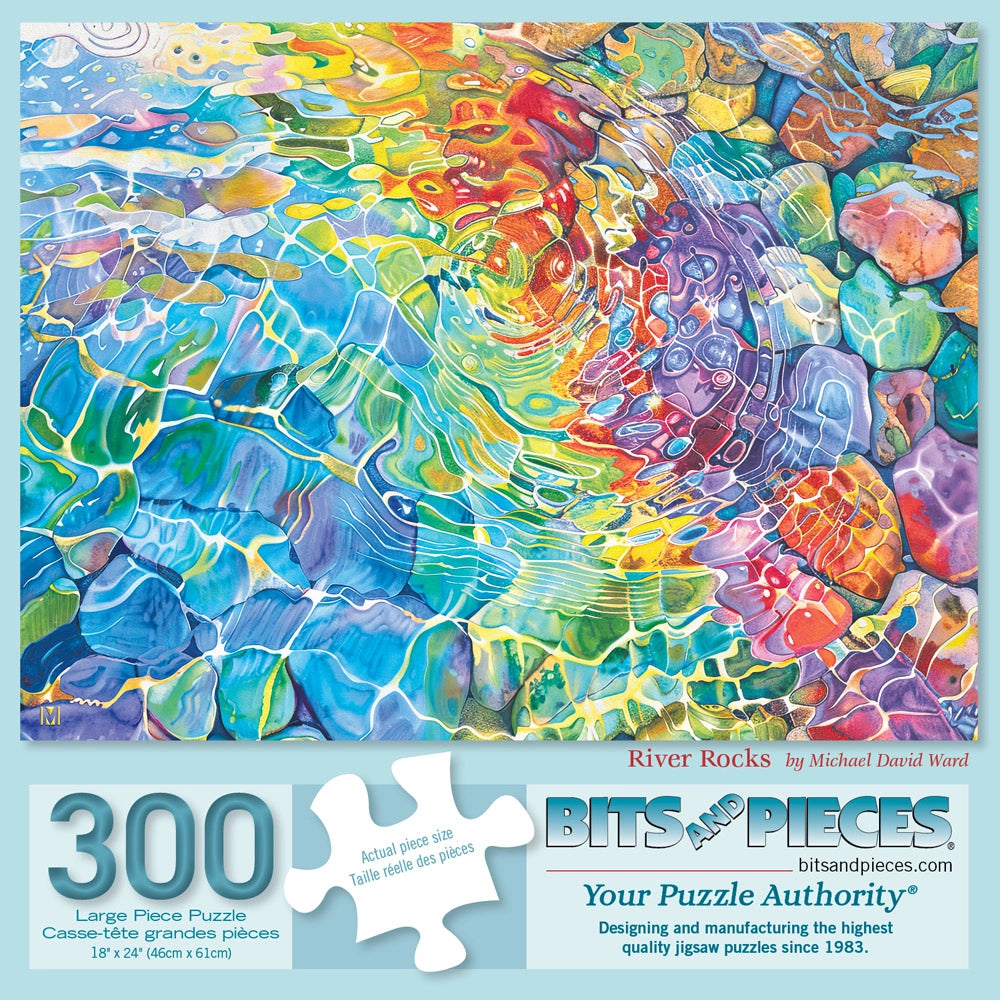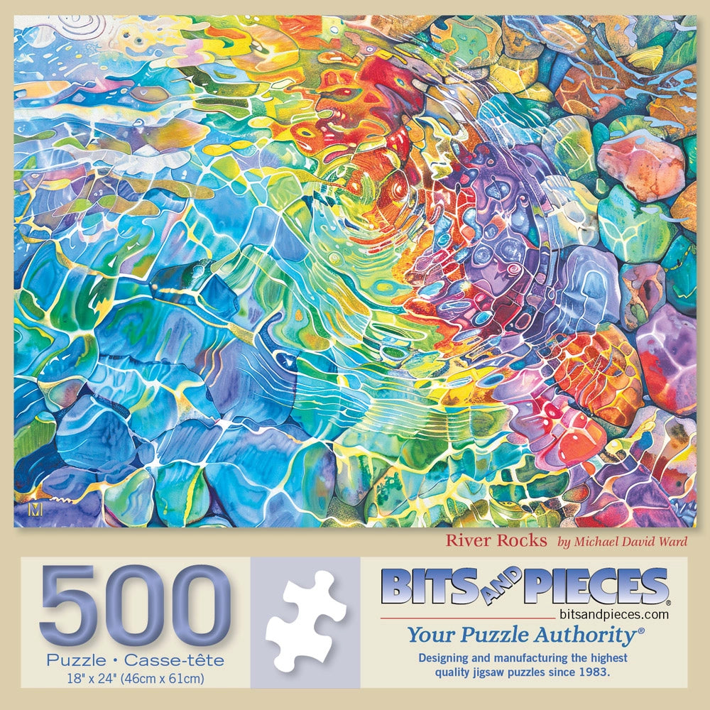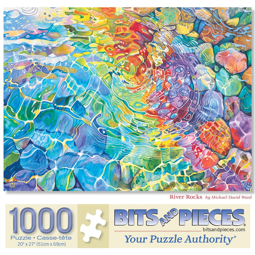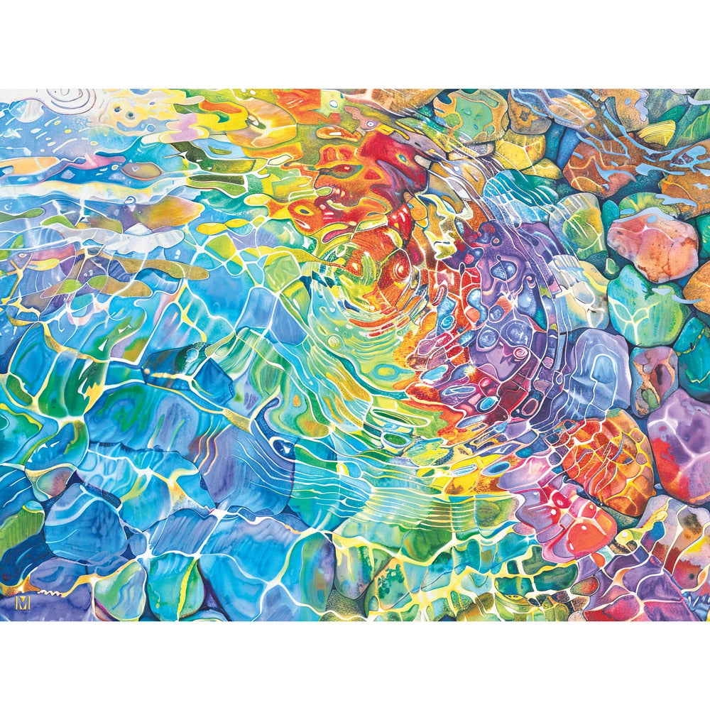 Dive into a kaleidoscope of color with River Rocks by Michael David Ward. Swirling water, light reflections, and smooth stones blend into a mesmerizing, abstract scene that keeps your eyes—and your puzzle strategy—on their toes. A challenging jigsaw puzzle full of vibrant detail and visual depth.