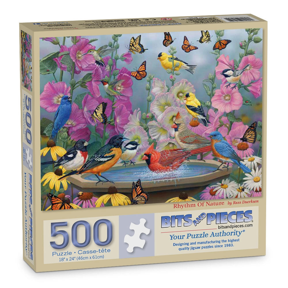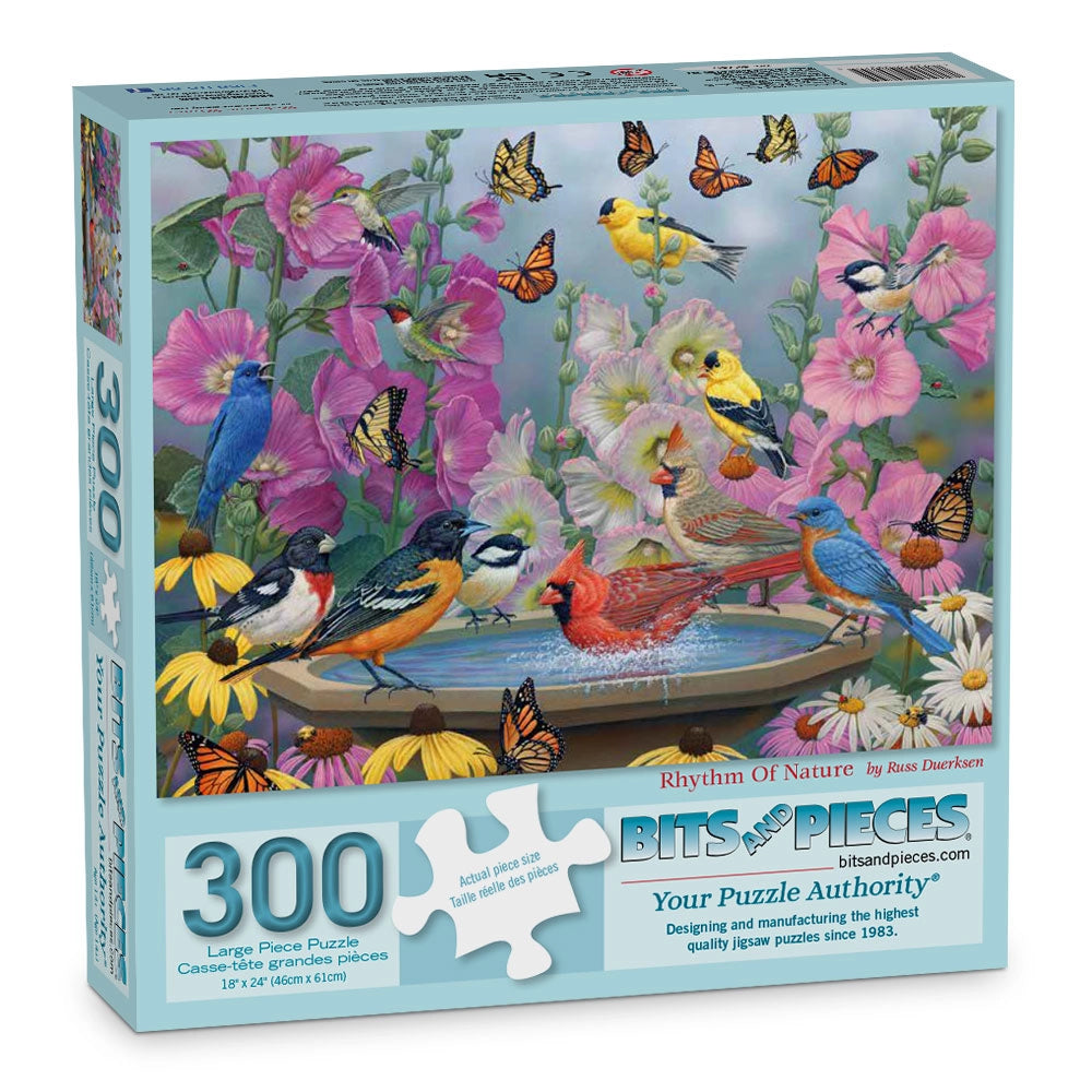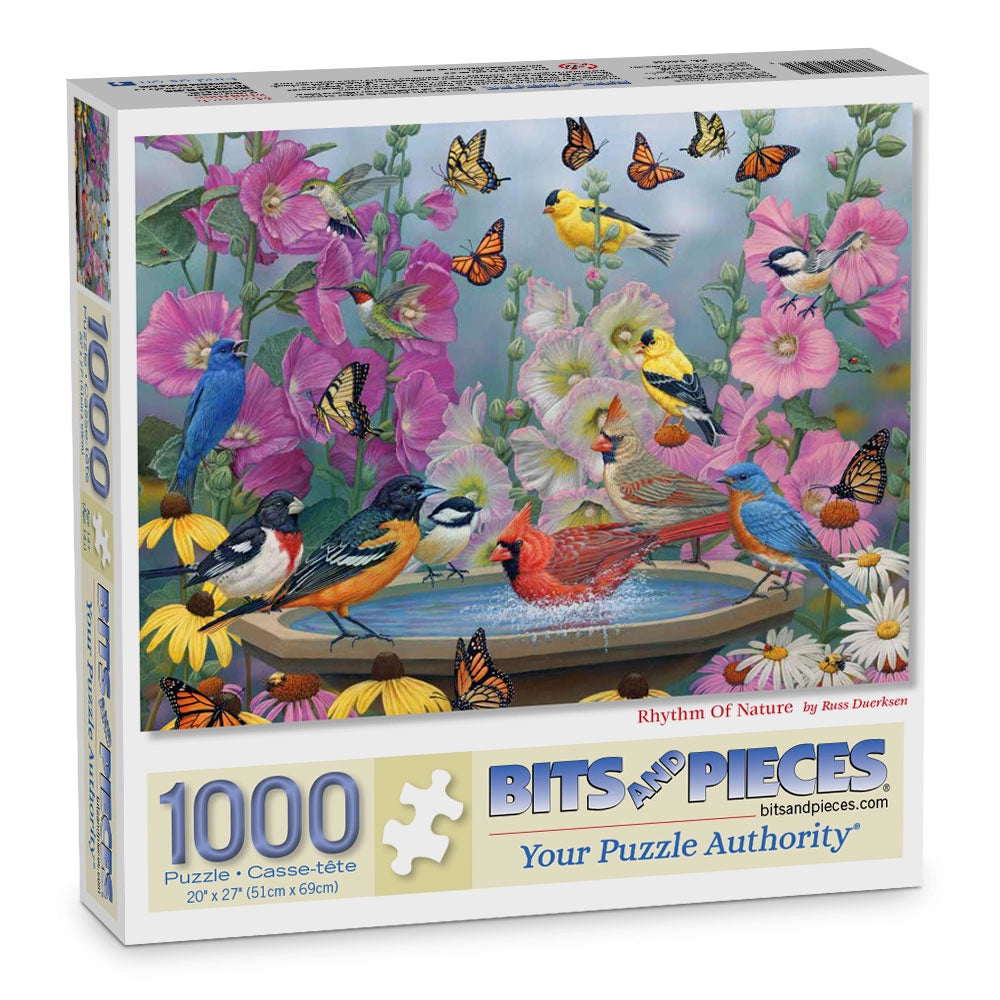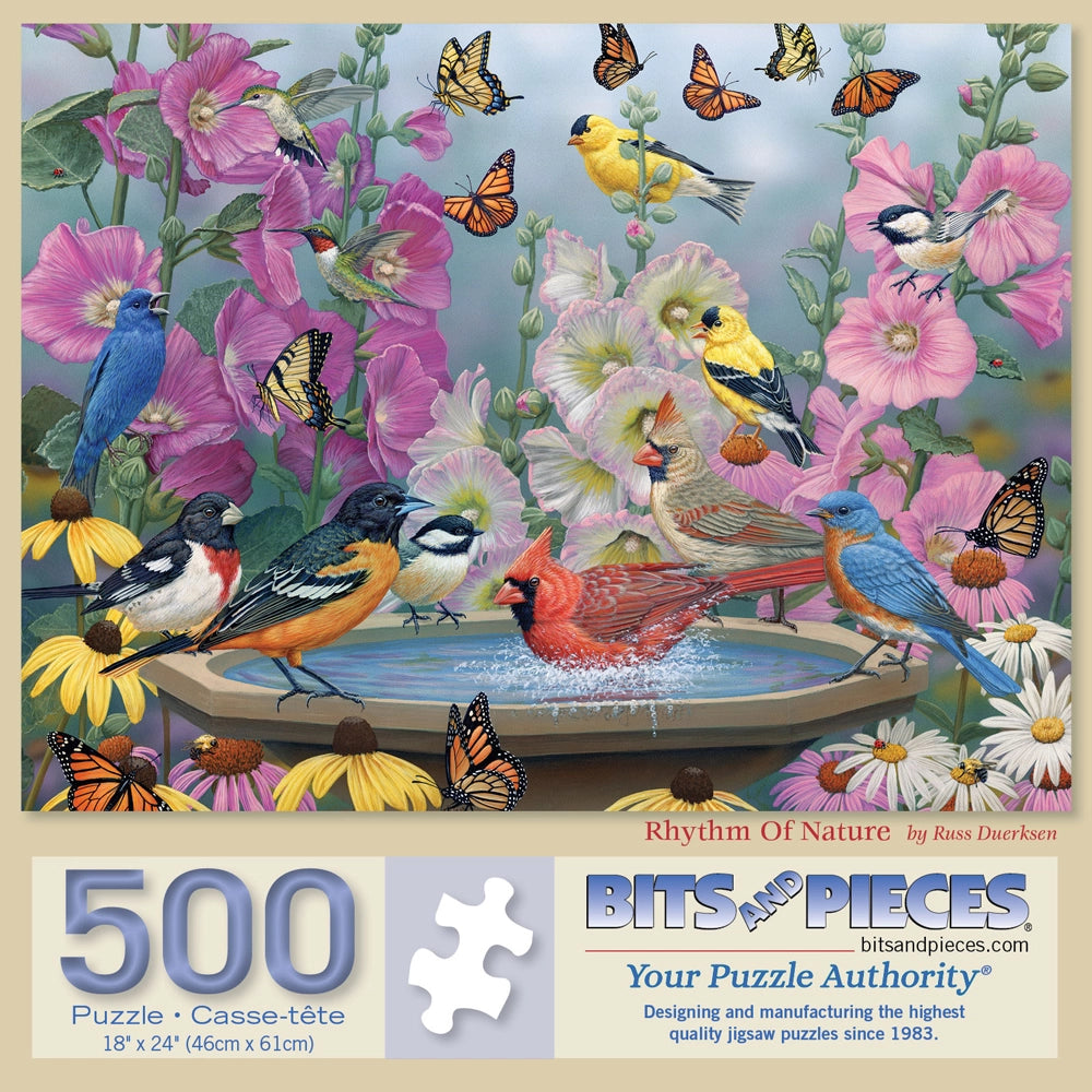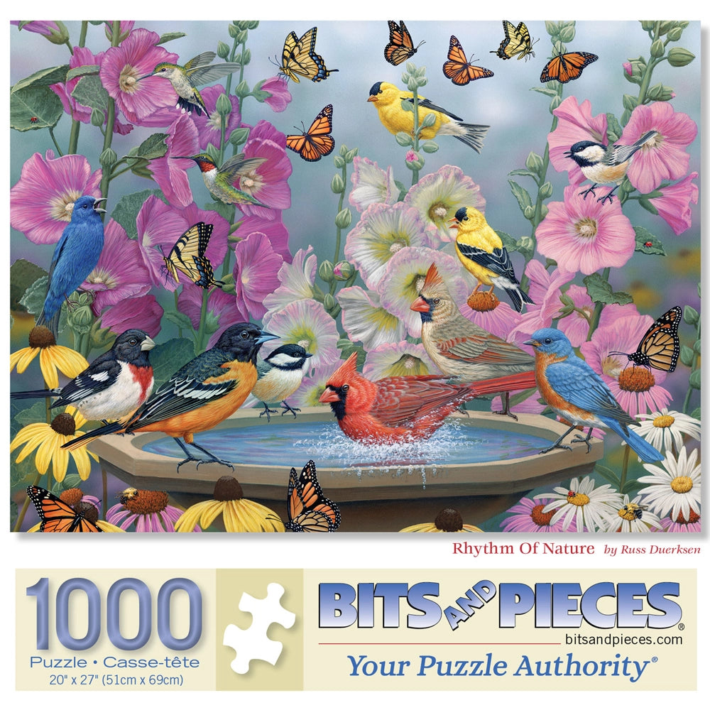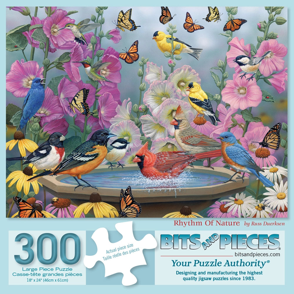 Step into a blooming backyard full of songbirds, butterflies, and blossoms. Rhythm of Nature by Russ Duerksen is a peaceful puzzle bursting with color and life. Every piece celebrates the beauty of a quiet garden moment, where birds sing and butterflies dance through the air.