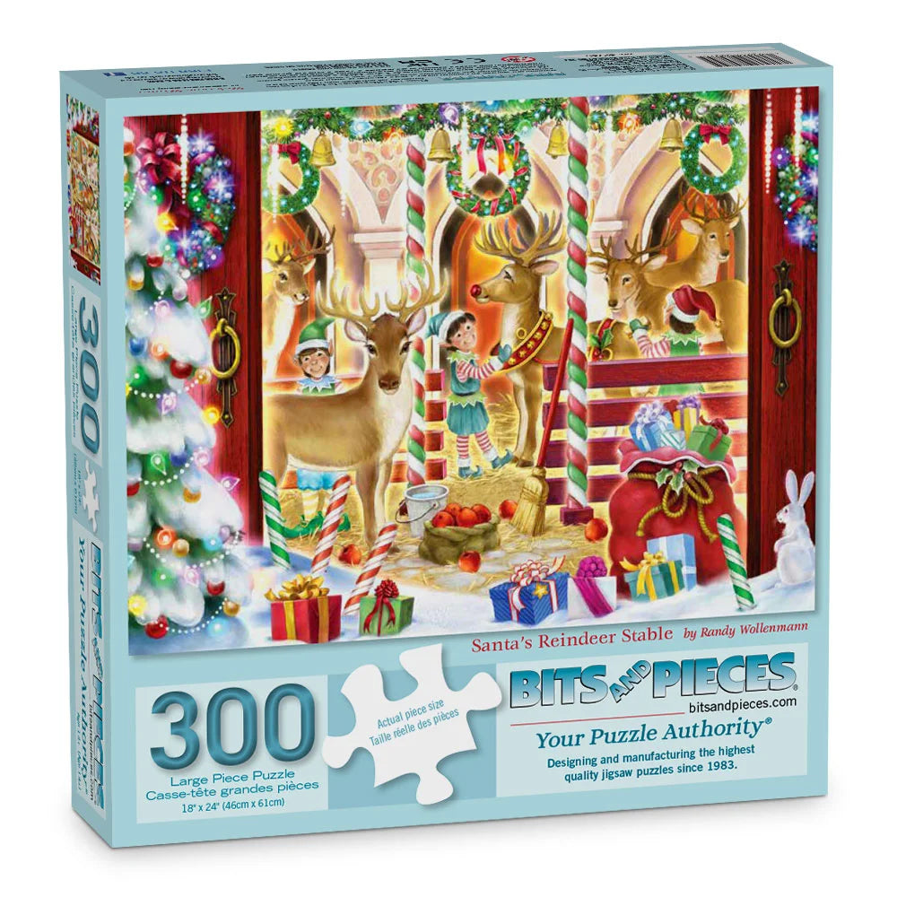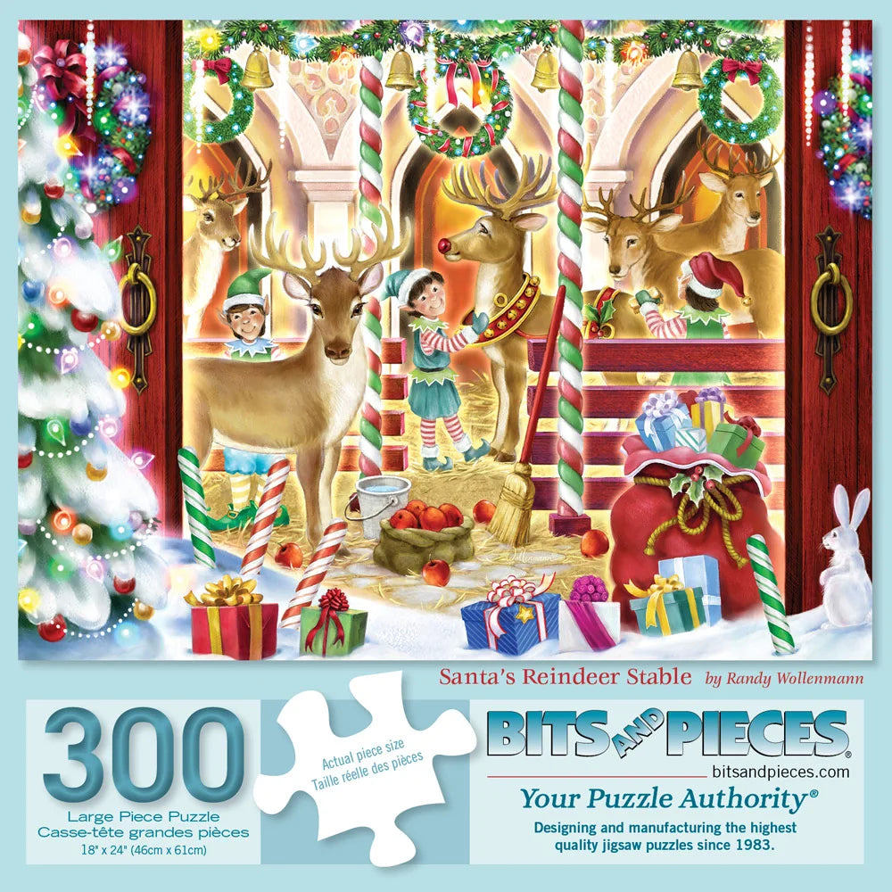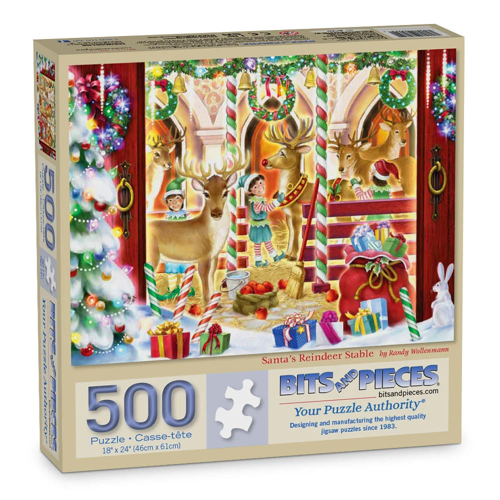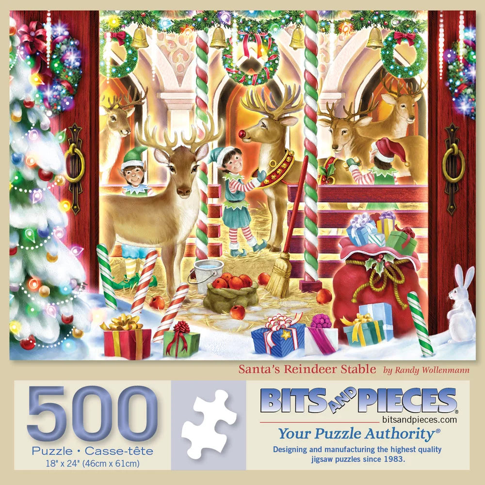Peek behind the magic with Santa’s Reindeer Stable by Randy Wollenmann. Inside the cozy stable, reindeer snack on treats while elves prep them for their big night. With candy canes, twinkling lights, and warm holiday colors, this charming puzzle is full of Christmas Eve anticipation.