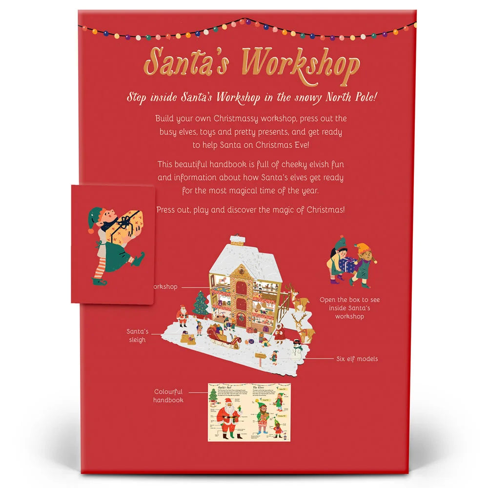 Step inside Santa’s Workshop with this magical box set, featuring an enchanting pop-out-and-play model kit, as well as a colorful guidebook to Santa’s busy headquarters. The workshop features 6 separate rooms over 3 floors, plus 30 buildable characters including elves, reindeer, a snowman, and of course Santa and Mrs. Claus! Set folds back down for easy storage and use year-after-year. 32 pages.