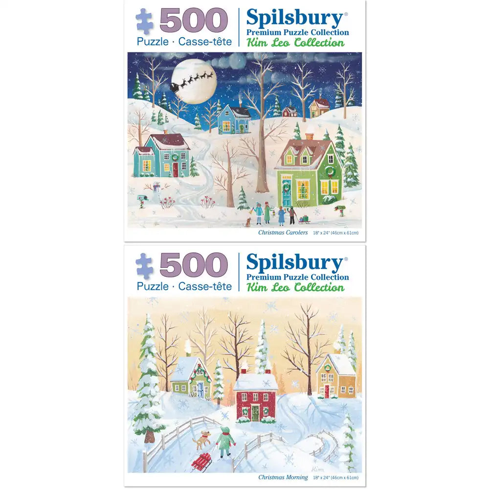 Step into a snowy village where the spirit of the season comes to life in two heartwarming winter scenes designed by Kim Leo. Christmas Carolers captures a magical moonlit evening, as neighbors gather to sing under twinkling stars. Christmas Morning welcomes a peaceful sunrise, with kids and pups dashing through the snow toward cozy cottages. Whether you're team cocoa or team caroling, this charming duo brings the nostalgia of the holidays right to your table—no mittens required.