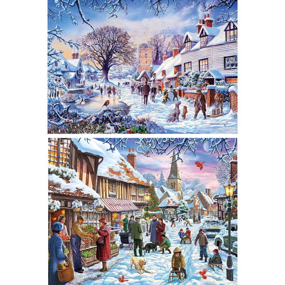 Set of 2 : Steve Crisp Wintertime Traditions Jigsaw Puzzles
