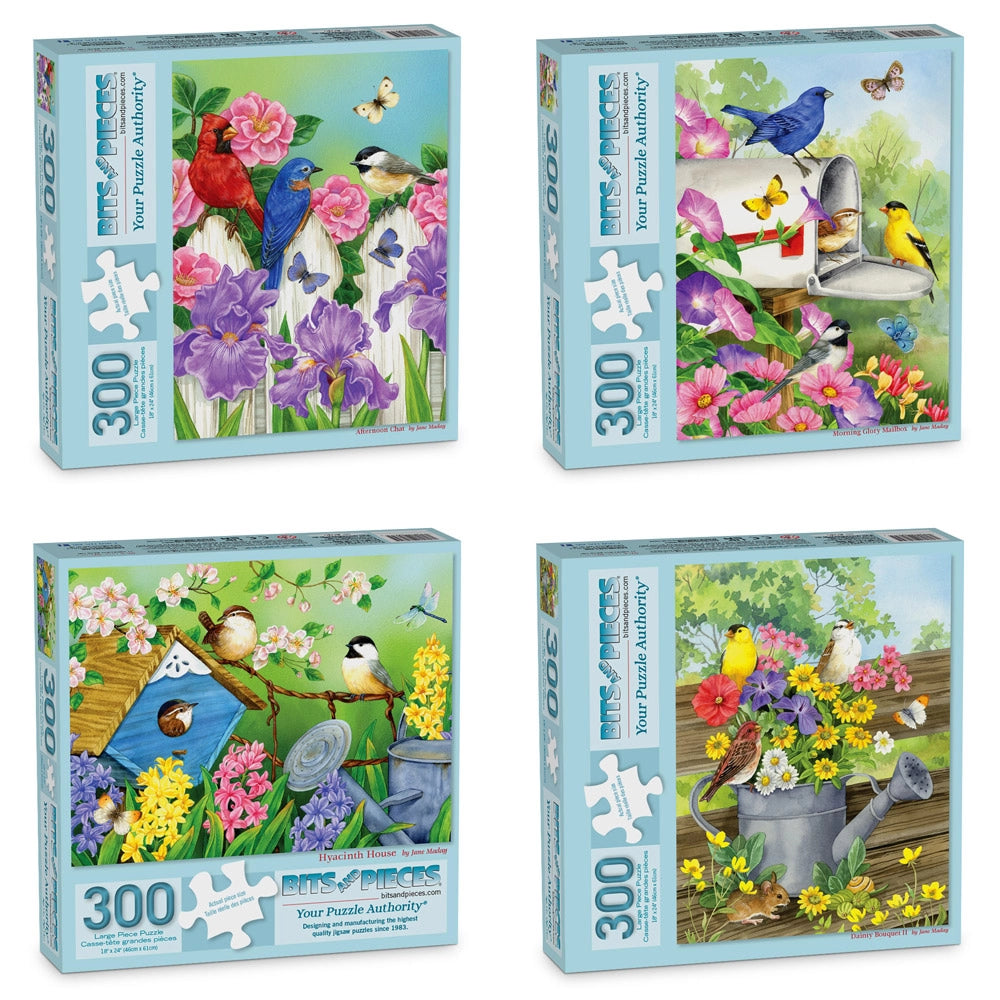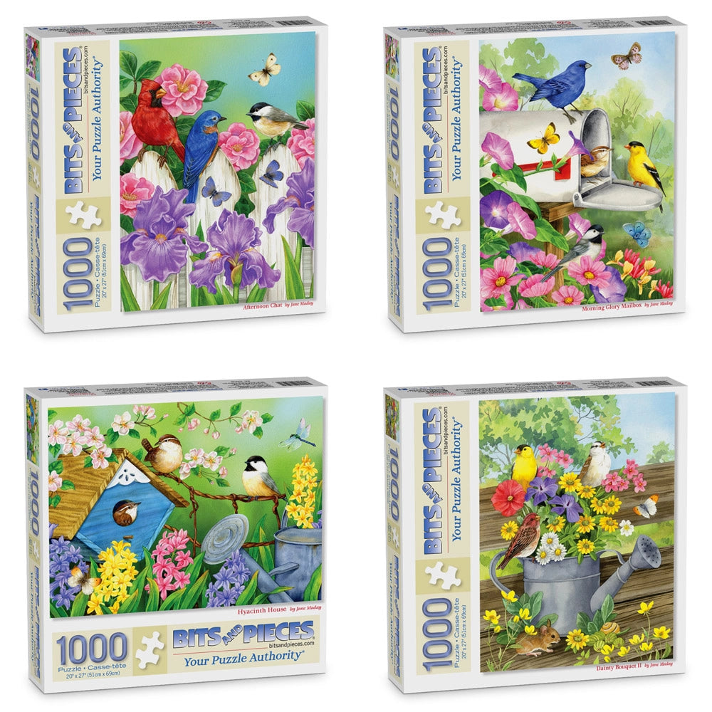 Bring the garden indoors with Garden Whispers, a delightful set of jigsaw puzzles by artist Jane Maday. From playful birds and blooming mailboxes to rustic watering cans and floral birdhouses, each puzzle is a fresh take on backyard beauty. These vibrant scenes are perfect for puzzlers who love flowers, wildlife, and the peaceful rhythm of nature.
