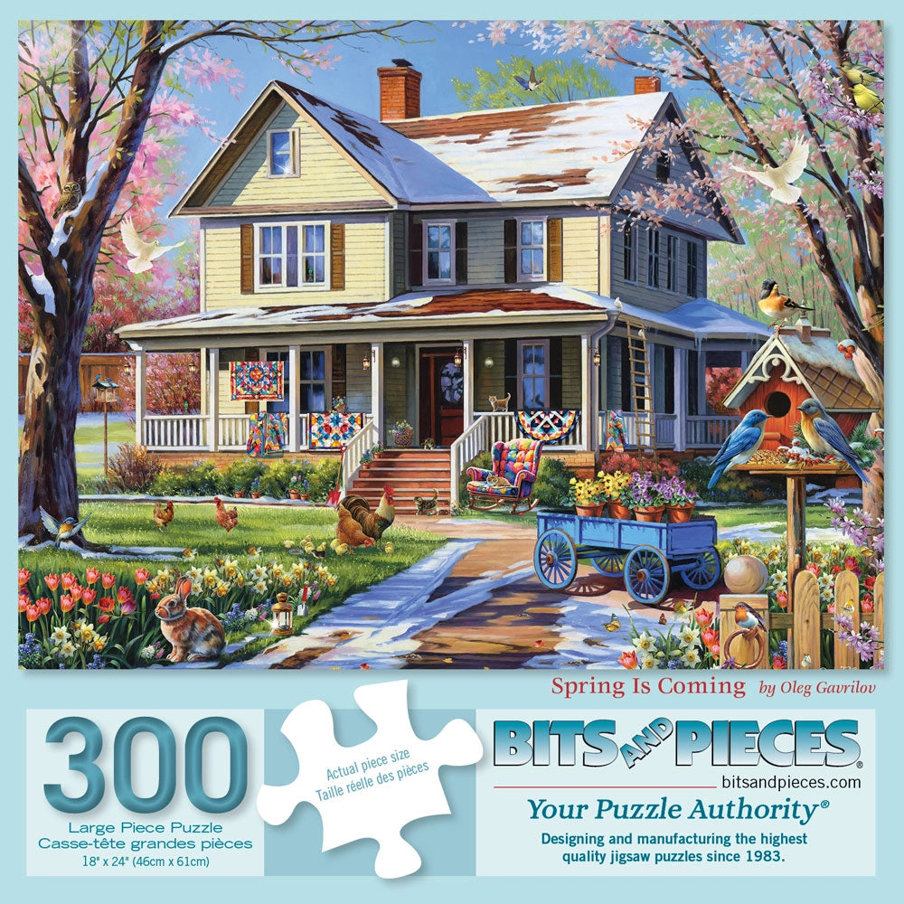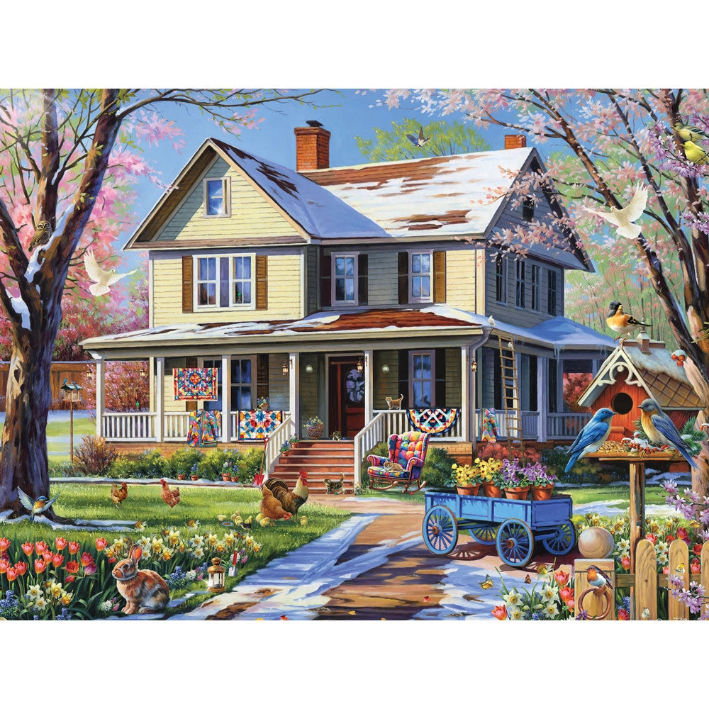Porch rockers, puddles, and warming sunshine tell the story of winter’s end in this cozy countryside jigsaw puzzle. Oleg Gavrilov brings every detail to life, from the muddy boots on the steps to the early spring blooms just beginning to peek out. It’s a gentle reminder that brighter days are just ahead.