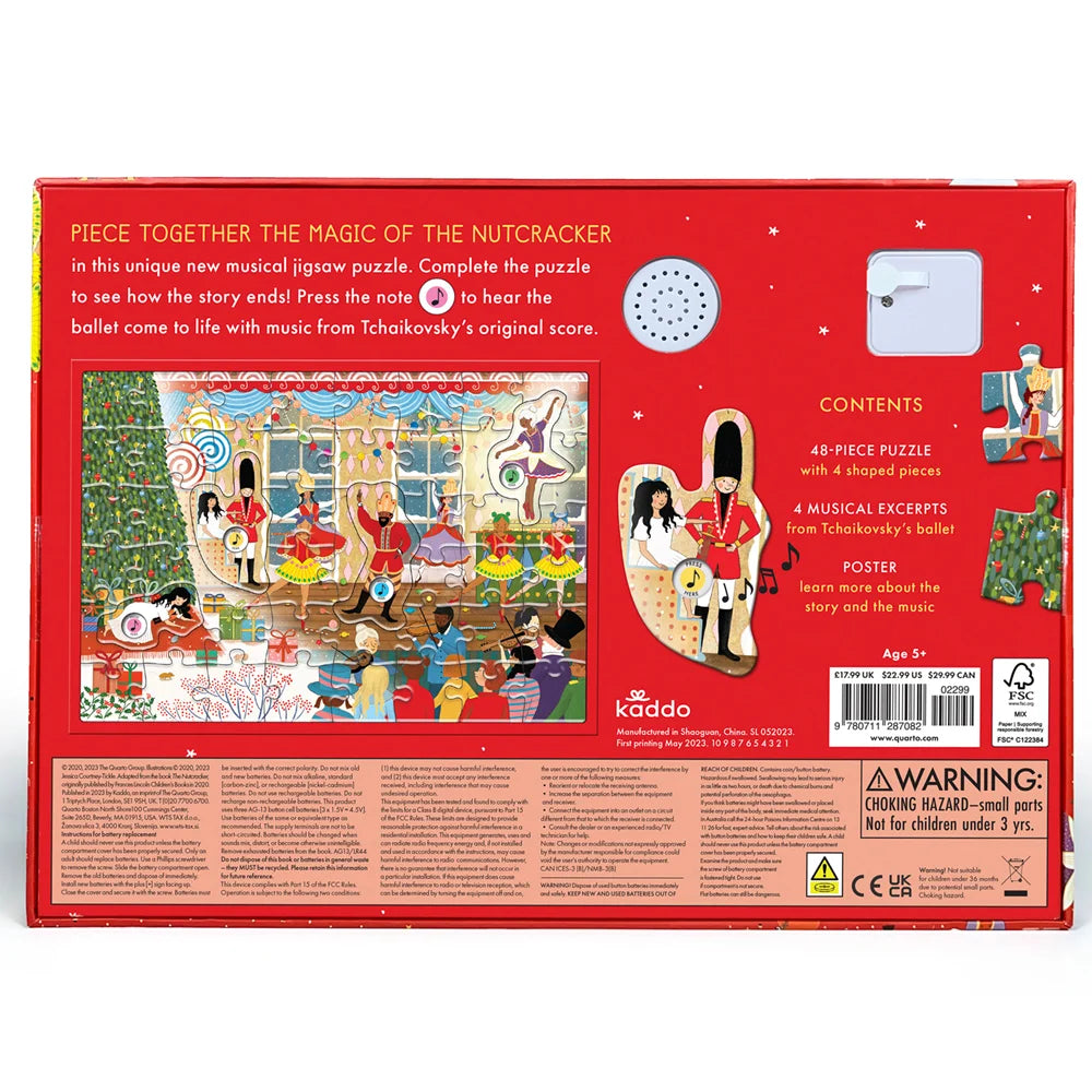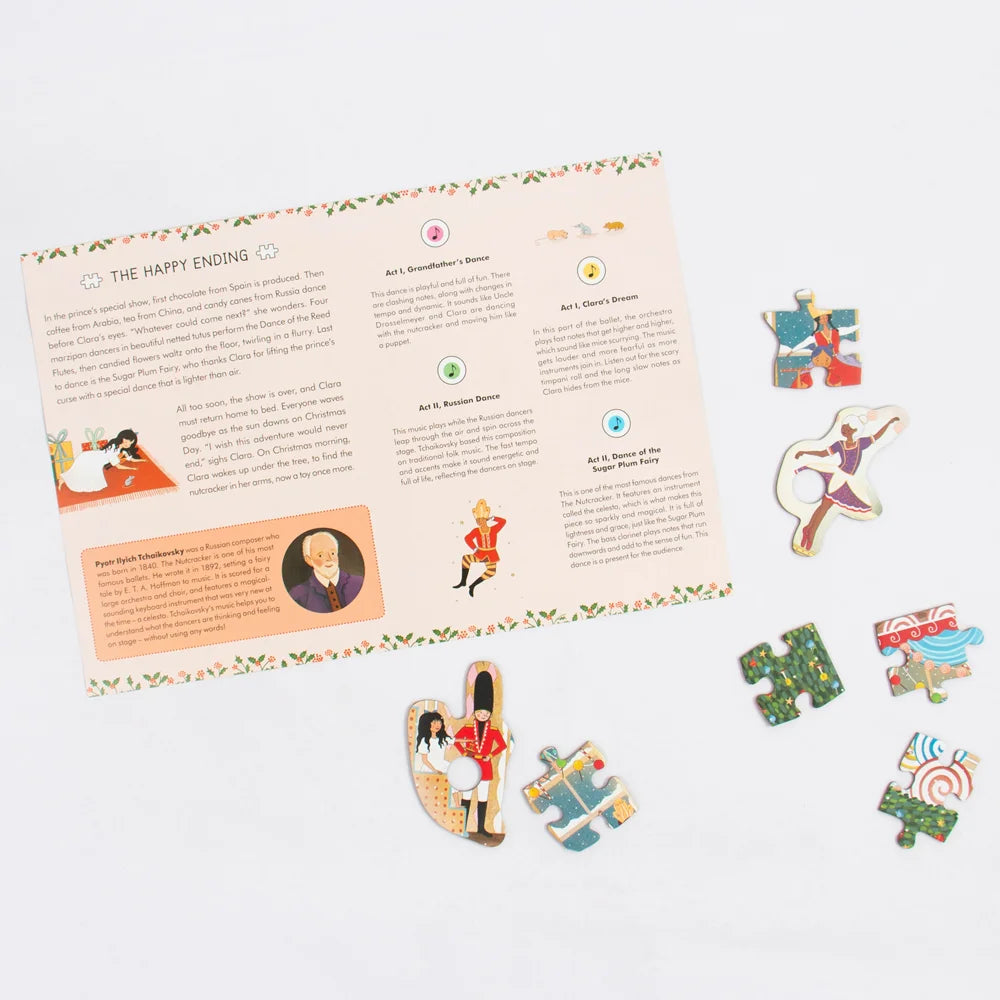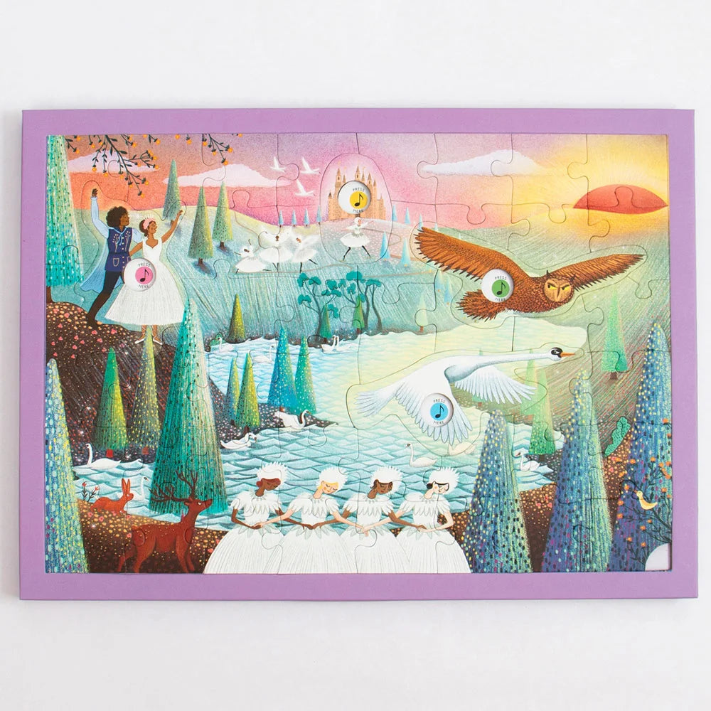 Piece together the beauty of The Nutcracker and Swan Lake with these unique musical jigsaw puzzles. When assembled, press four of the pieces to hear sound clips from Tchaikovsky’s beloved ballet. An unforgettable activity to share with young music lovers and aspiring ballerinas. Includes story poster. Ages 5+. 48 large pieces, 11-3/4" x 8-1/3".